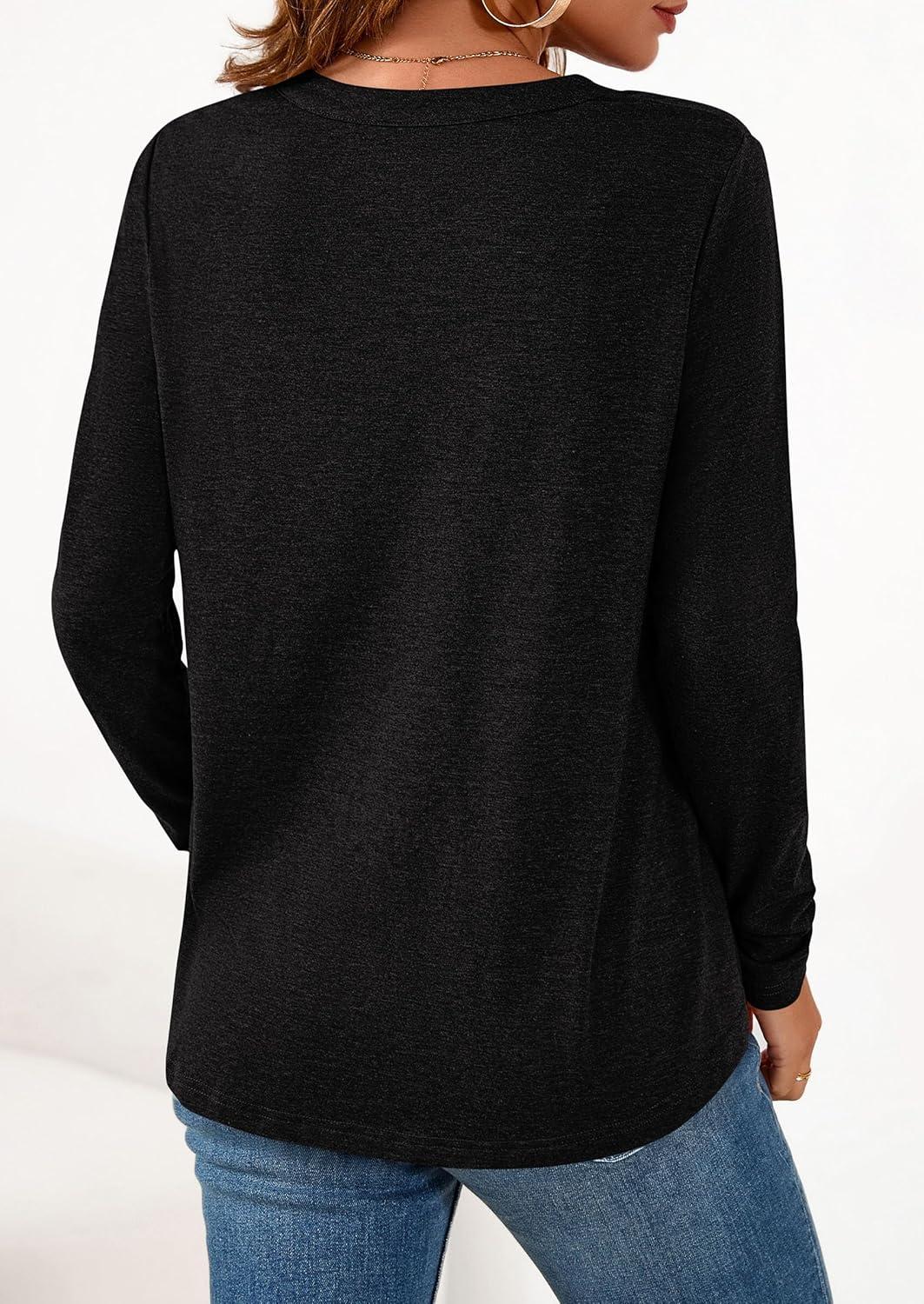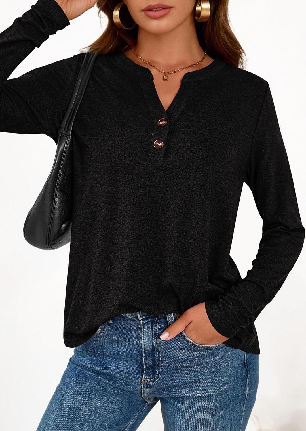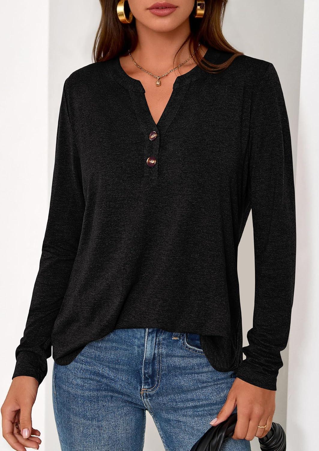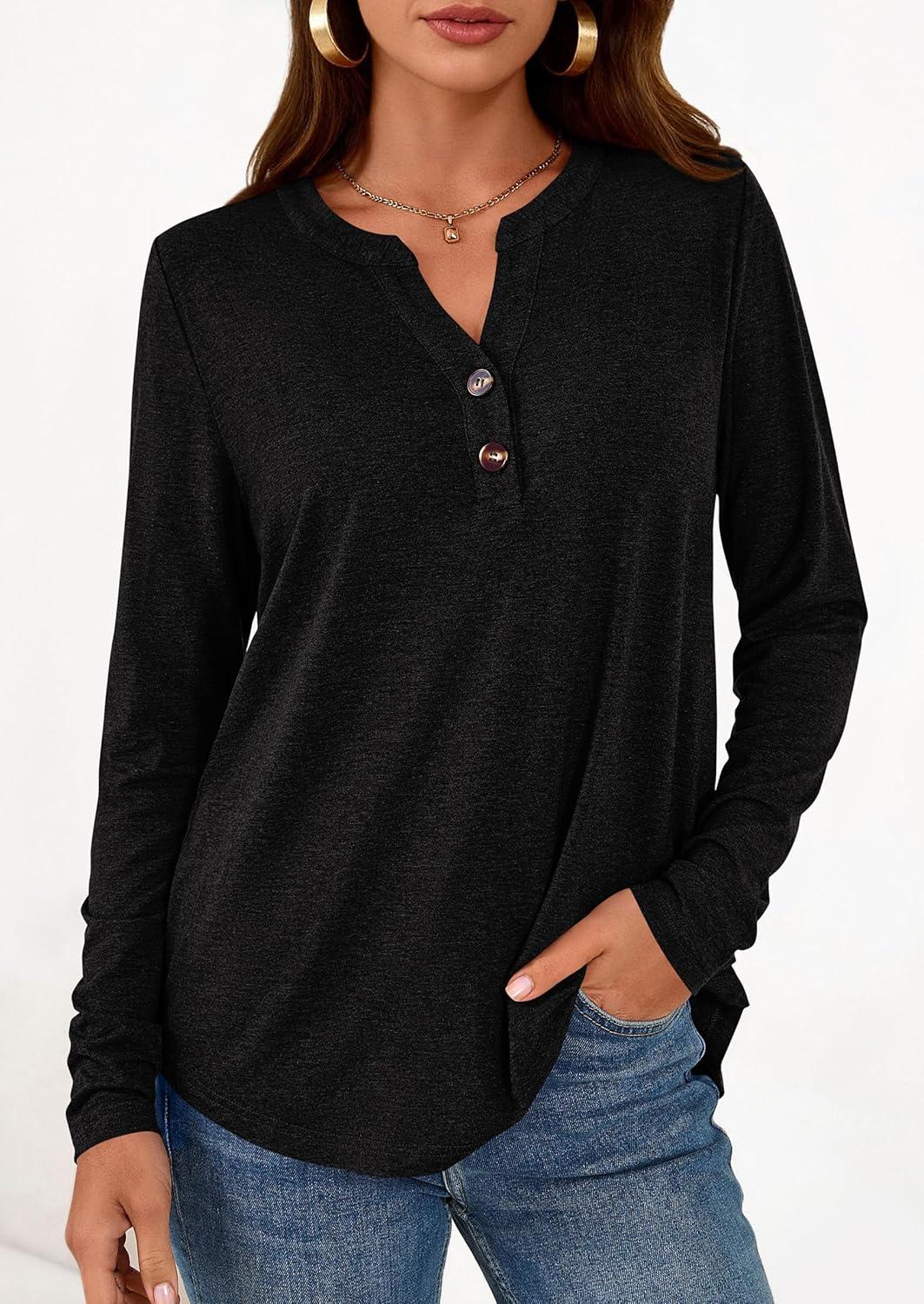 PRETTYGARDEN Long Sleeve Shirts for Women 2025 Fall Fashion Clothing Henley Tops Trendy Dressy Casual Blouses Work Outfits(Black)