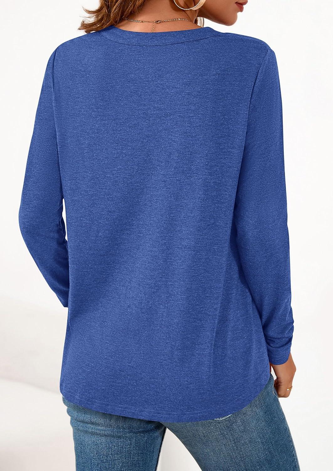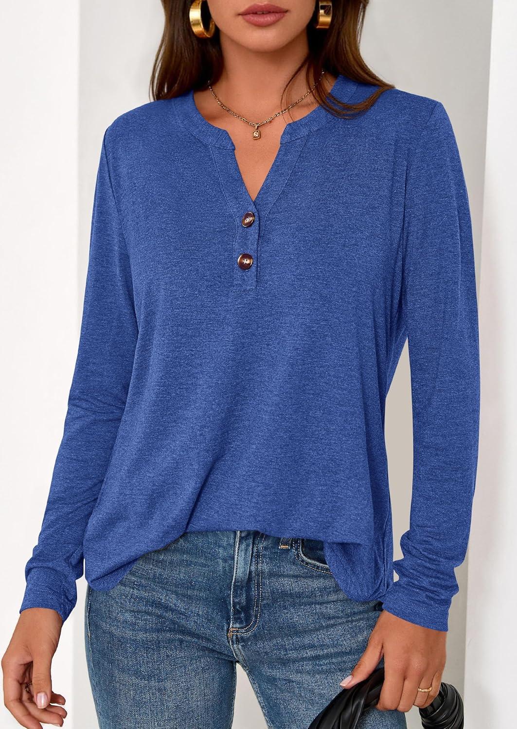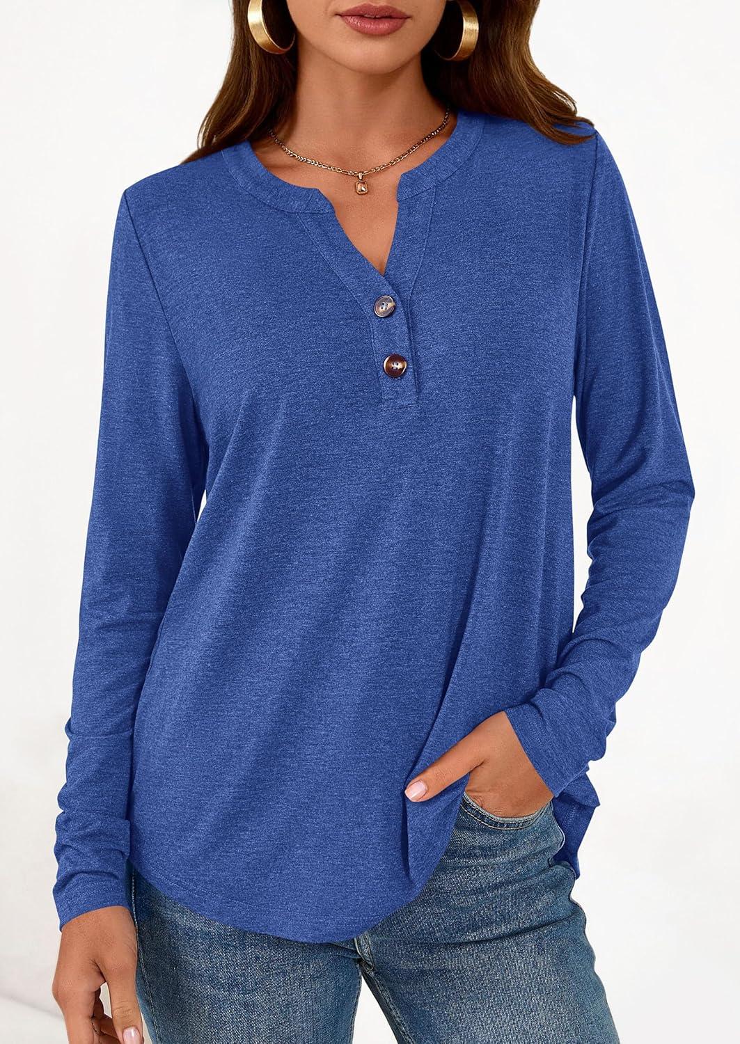 PRETTYGARDEN Long Sleeve Shirts for Women 2025 Fall Fashion Clothing Henley Tops Trendy Dressy Casual Blouses Work Outfits(Blue)