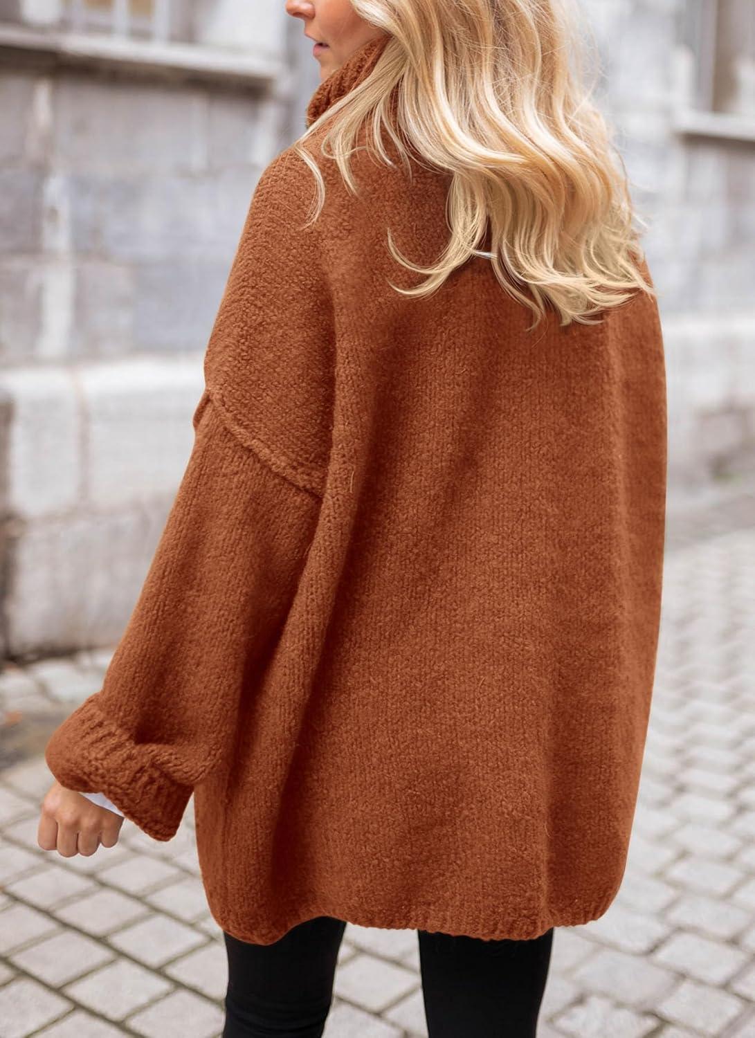 PRETTYGARDEN Oversized Sweaters for Women 2025 Chunky Turtleneck Sweater Fall Clothes Long Sleeve Tops Winter Clothing(Dark Coffee)