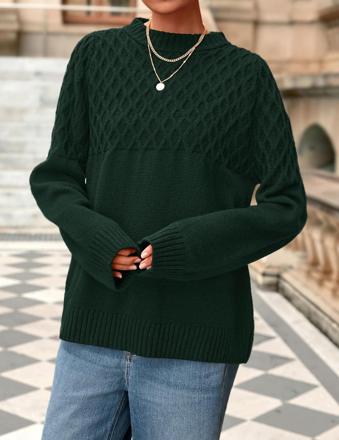 PRETTYGARDEN Oversized Sweaters for Women 2025 Fall Cute Cable Knit Long Sleeve Crewneck Chunky Pullover Tops Winter Clothing(Dark Green)