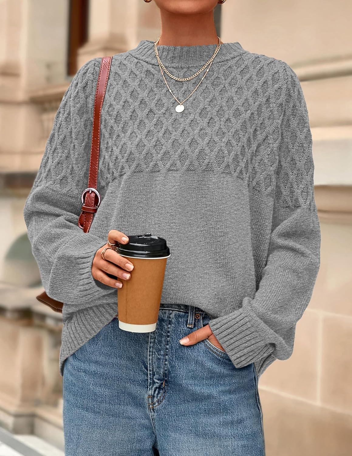 PRETTYGARDEN Oversized Sweaters for Women 2025 Fall Cute Cable Knit Long Sleeve Crewneck Chunky Pullover Tops Winter Clothing(Grey)