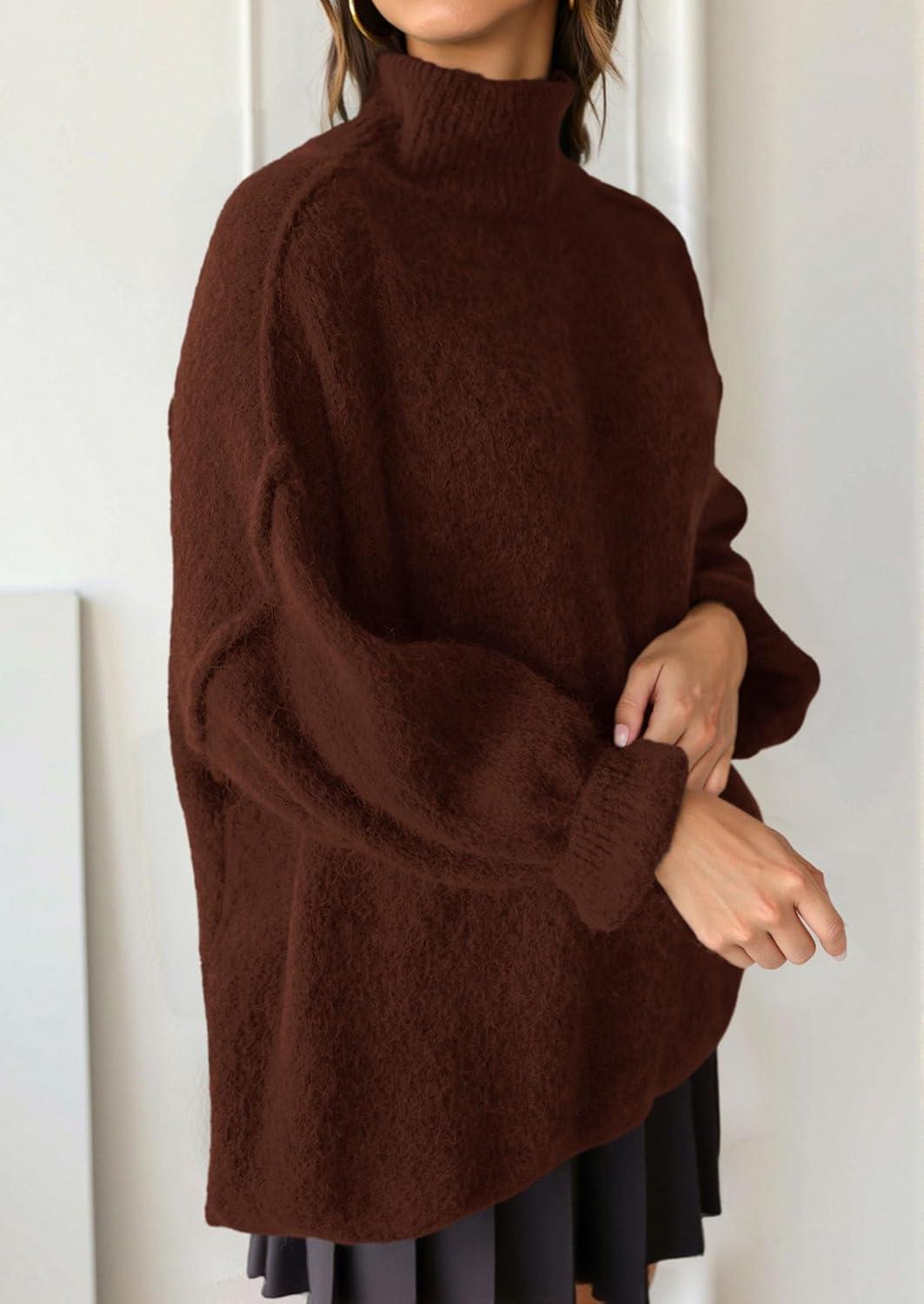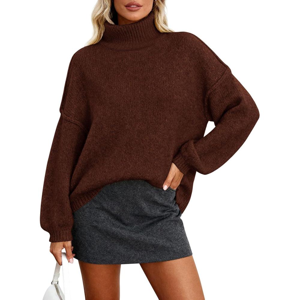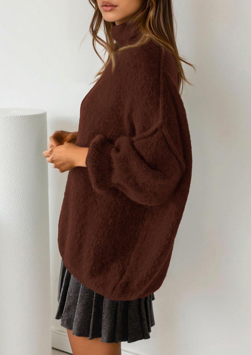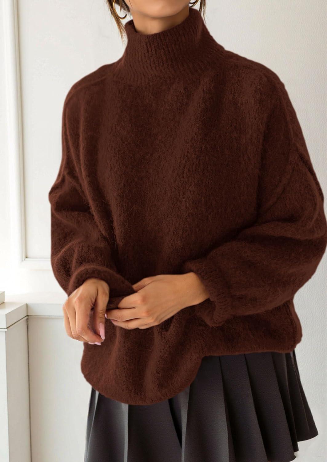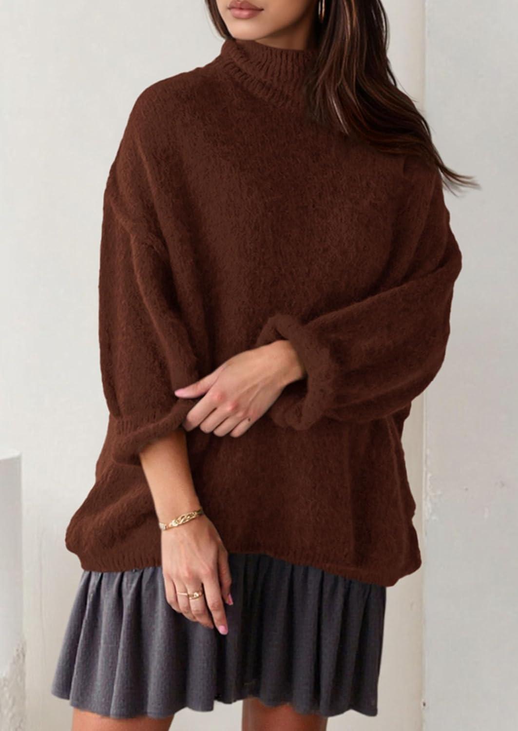 PRETTYGARDEN Oversized Sweaters for Women Fall Clothes 2025 Long Sleeve Mock Neck Tops Chunky Knit Pullover Winter Clothing(Brown)