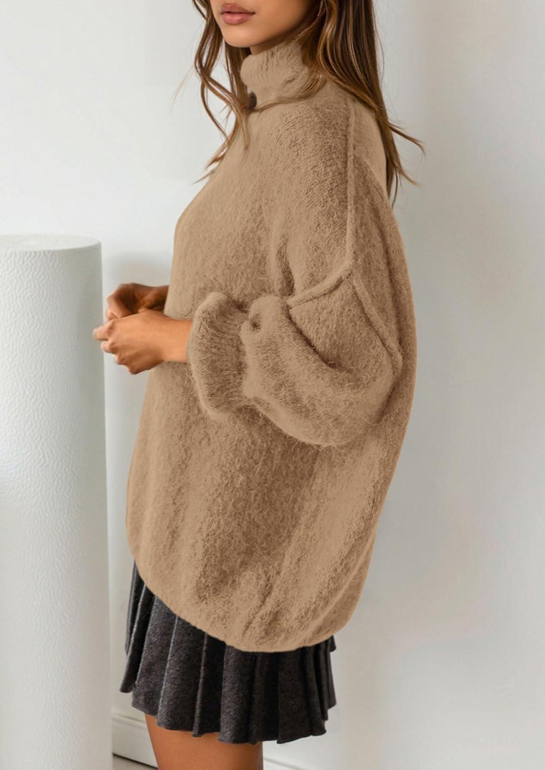 PRETTYGARDEN Oversized Sweaters for Women Fall Clothes 2025 Long Sleeve Mock Neck Tops Chunky Knit Pullover Winter Clothing(Khaki)