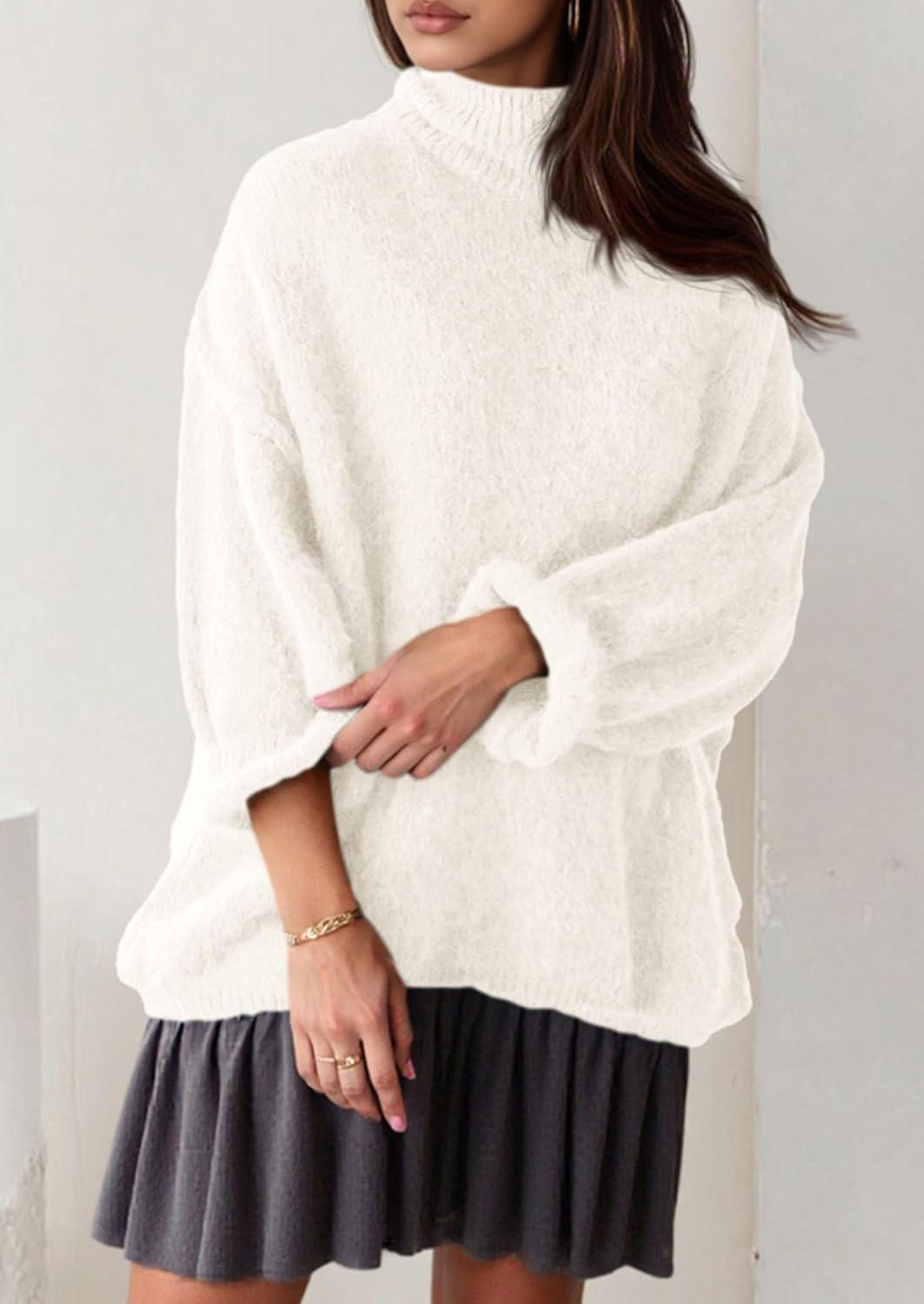 PRETTYGARDEN Oversized Sweaters for Women Fall Clothes 2025 Long Sleeve Mock Neck Tops Chunky Knit Pullover Winter Clothing(White)