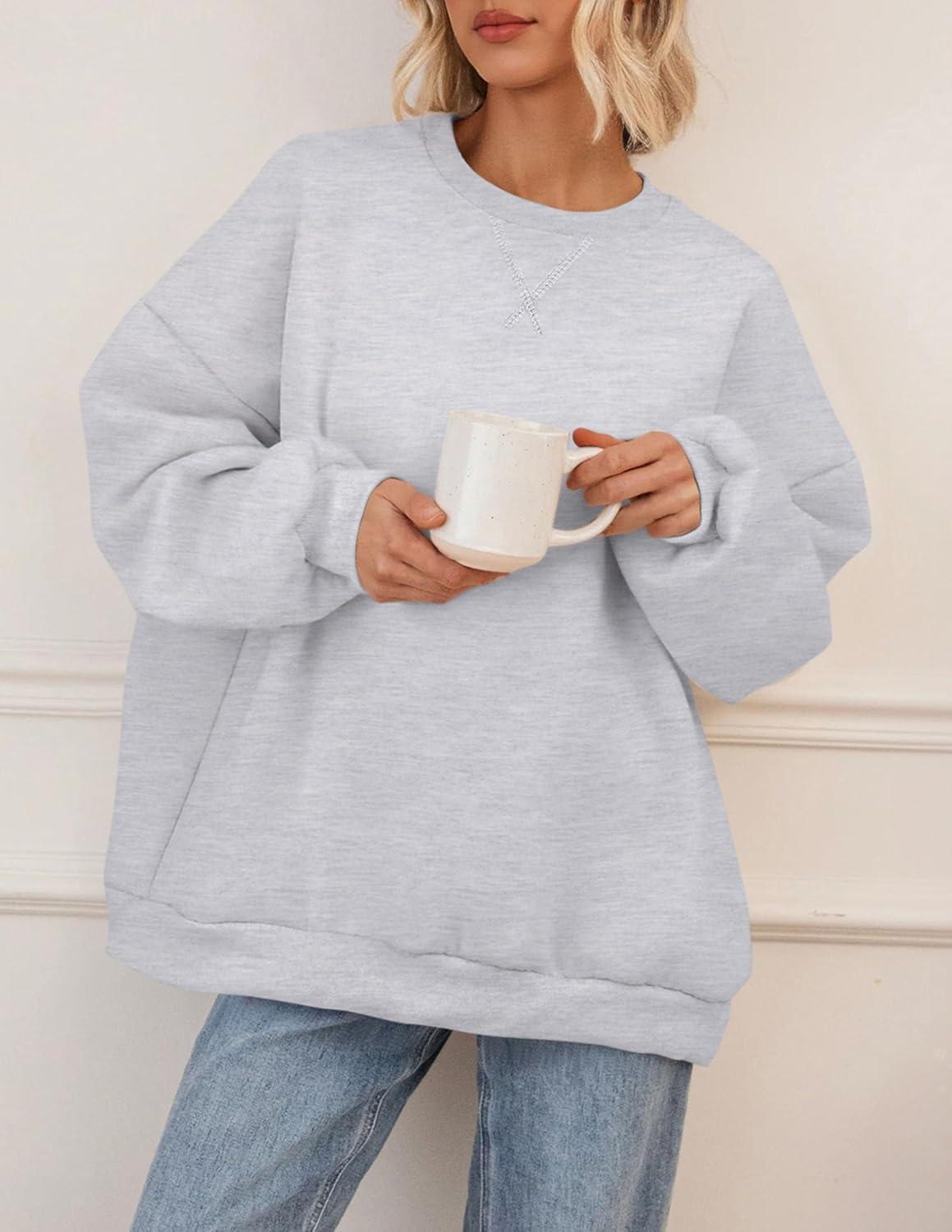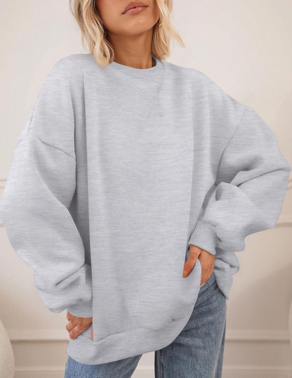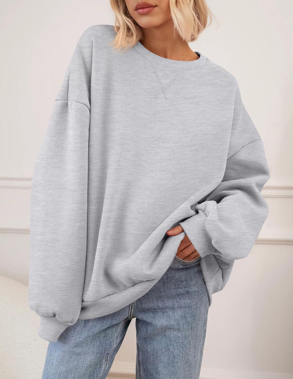 PRETTYGARDEN Oversized Sweatshirt for Women Fall Outfits 2025 Crewneck Long Sleeve Tops Fleece Pullover Winter Clothing(Grey)