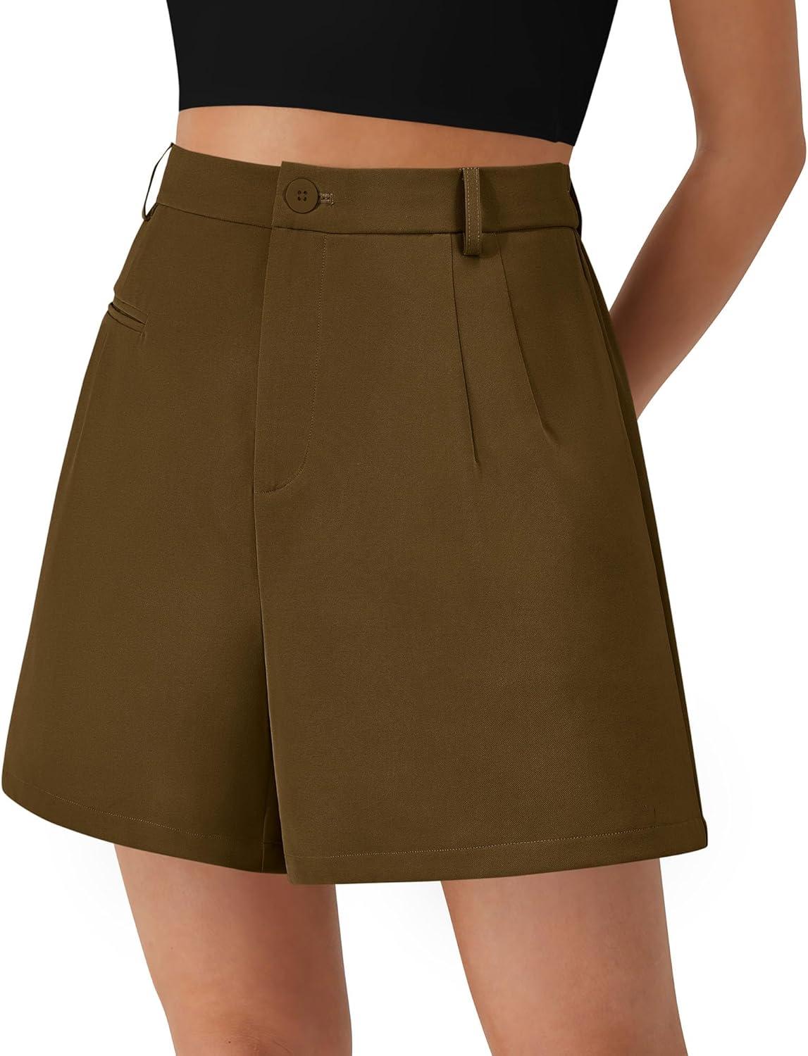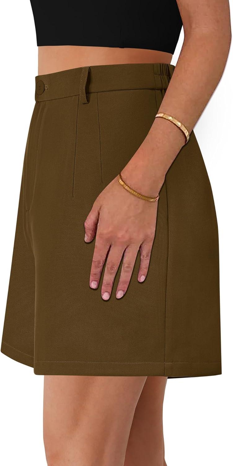 PRETTYGARDEN Shorts for Women Dressy 2025 Summer Elastic High Waisted Wide Leg Business Casual Work Shorts with Pockets(Dark Khaki)