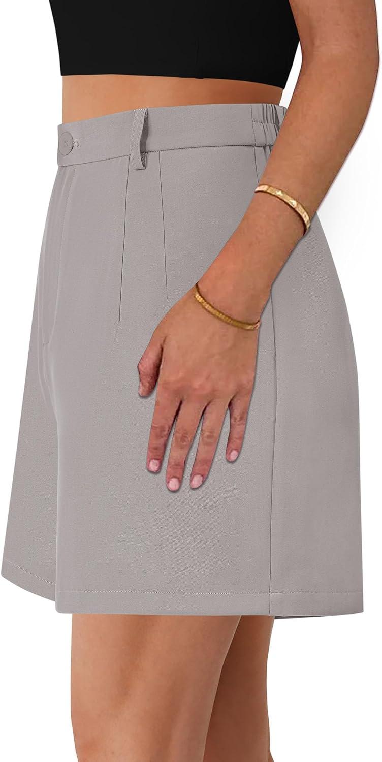 PRETTYGARDEN Shorts for Women Dressy 2025 Summer Elastic High Waisted Wide Leg Business Casual Work Shorts with Pockets(Light Grey)