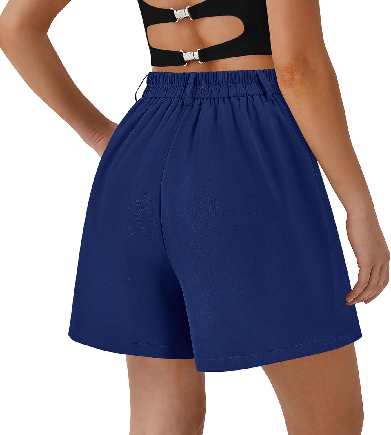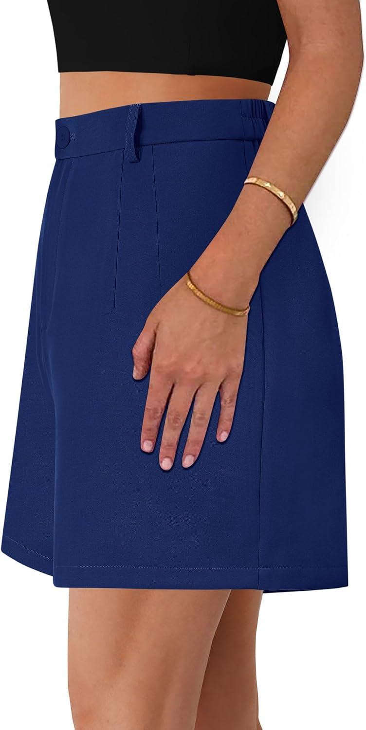 PRETTYGARDEN Shorts for Women Dressy 2025 Summer Elastic High Waisted Wide Leg Business Casual Work Shorts with Pockets(Royal Blue)