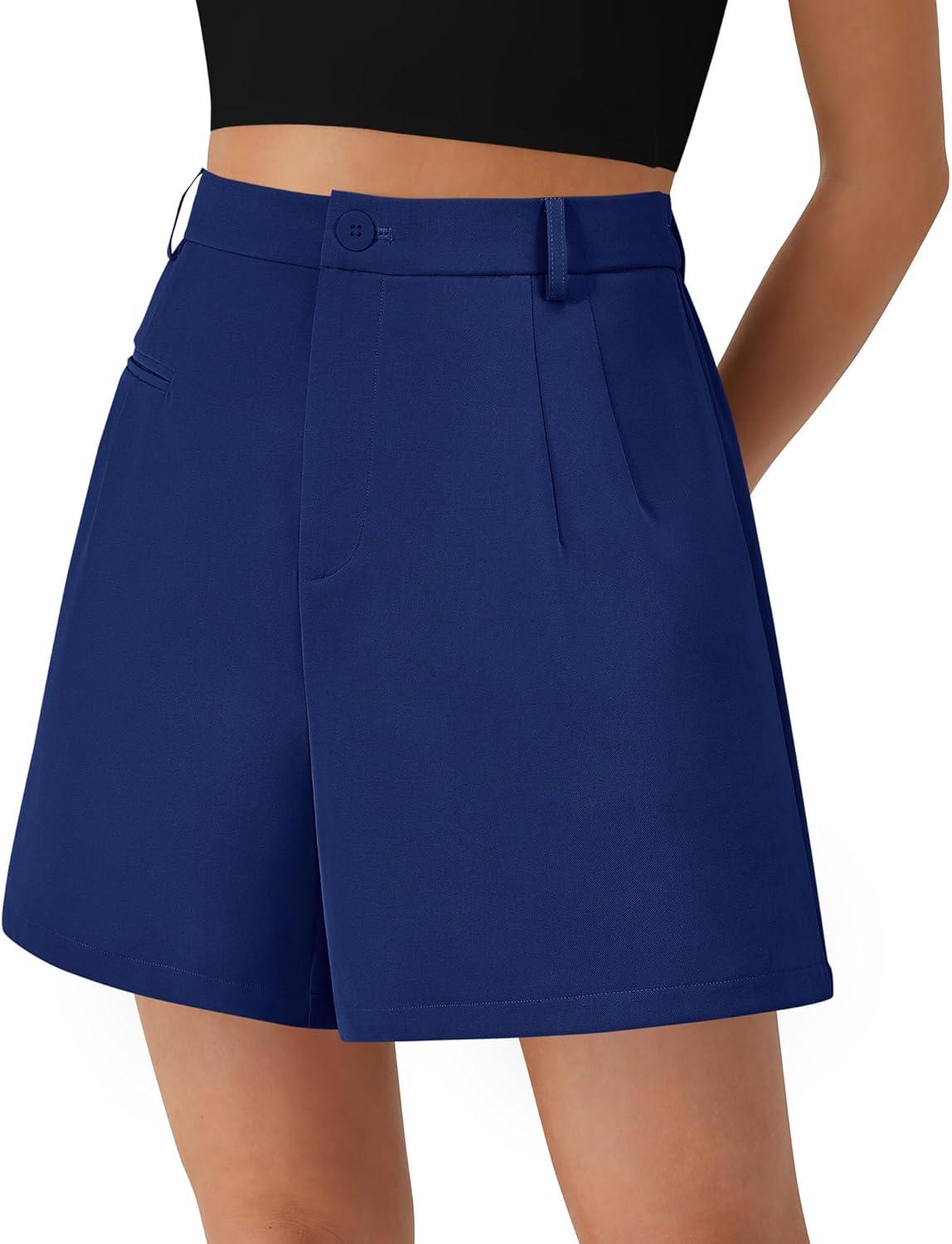 PRETTYGARDEN Shorts for Women Dressy 2025 Summer Elastic High Waisted Wide Leg Business Casual Work Shorts with Pockets(Navy Blue)