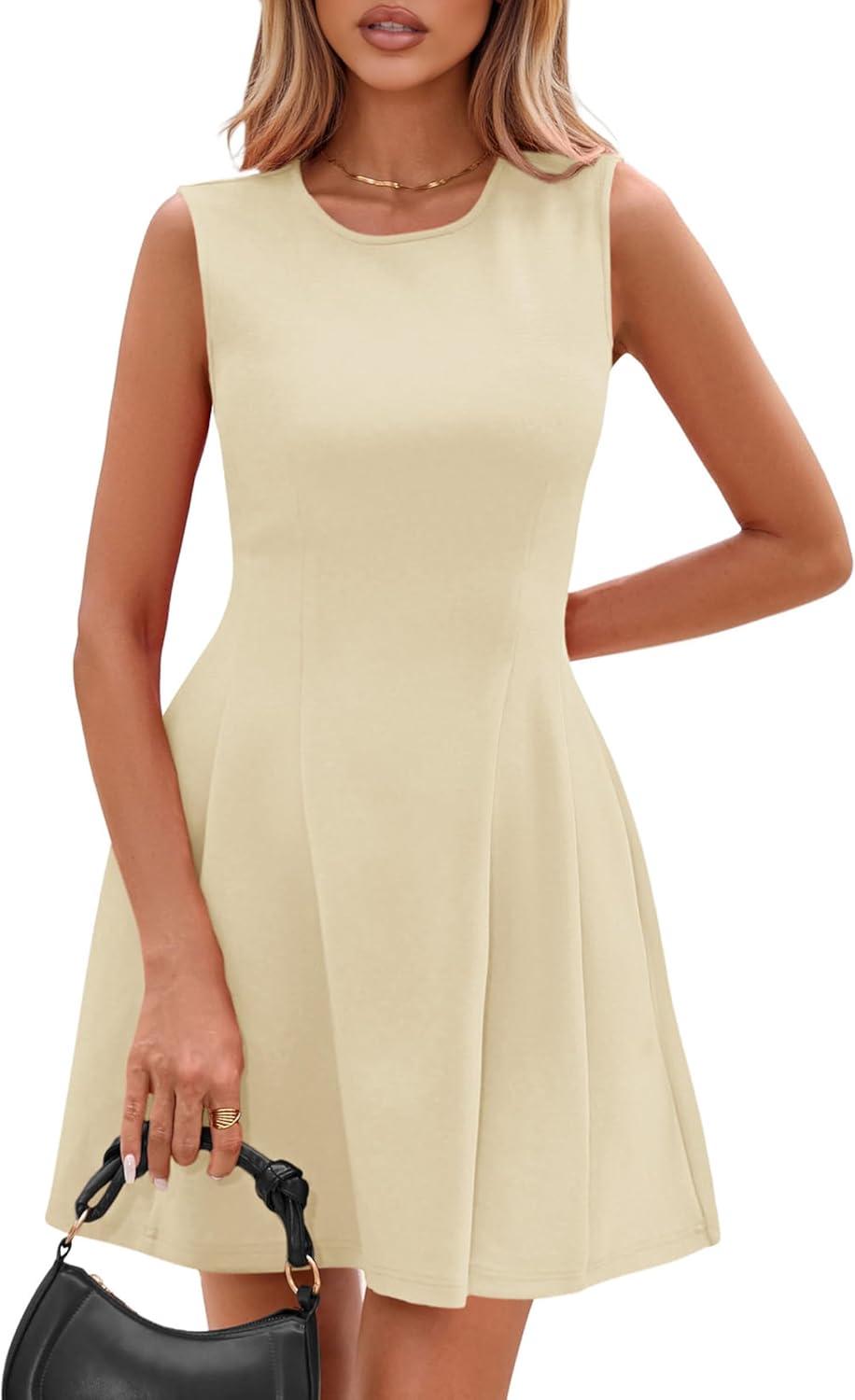 PRETTYGARDEN Summer Dresses for Women 2025 Elegant Classy A Line Business Casual Work Graduation Cocktail Short Dress(Beige)