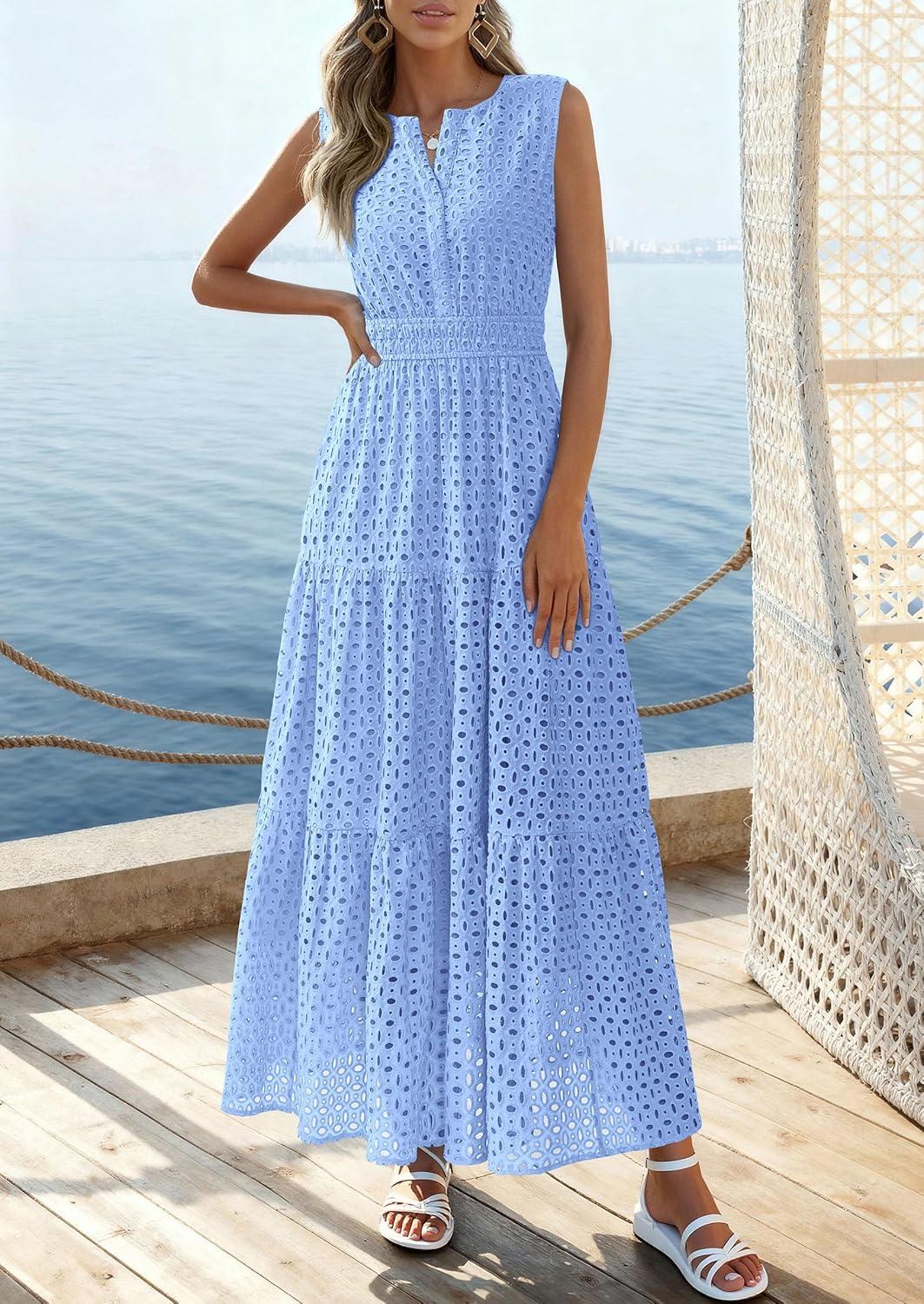 Be the first to review “PRETTYGARDEN Summer Dresses for Women 2026 Sundresses Sleeveless V Neck Eyelet A Line Flowy Beach Vacation Spring Maxi Dress(Light Blue)” Cancel reply