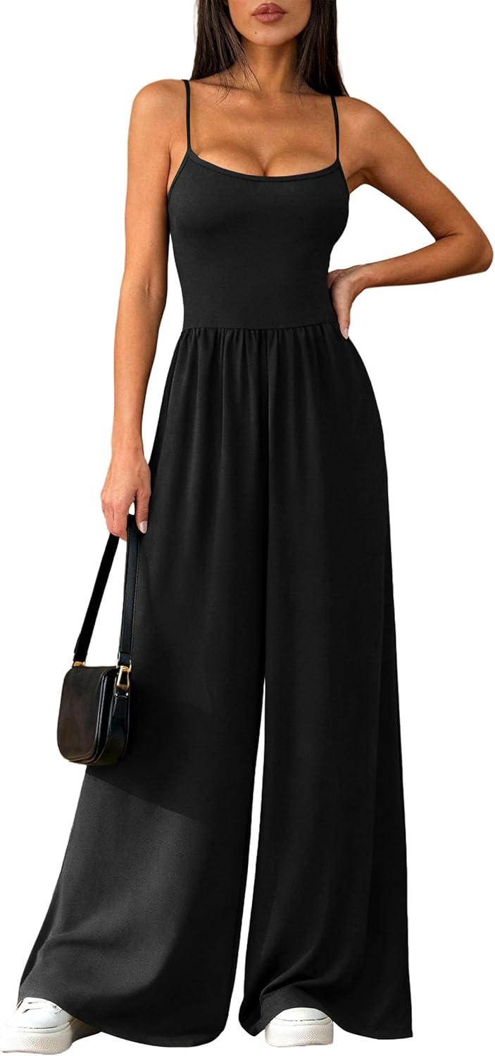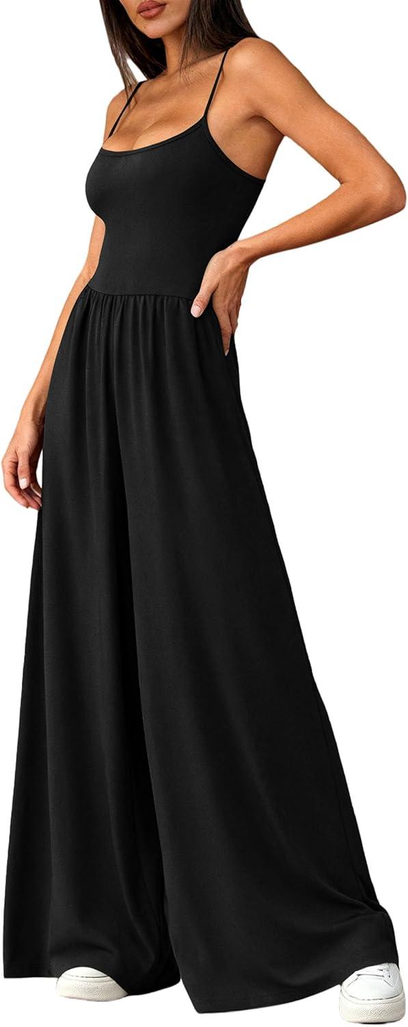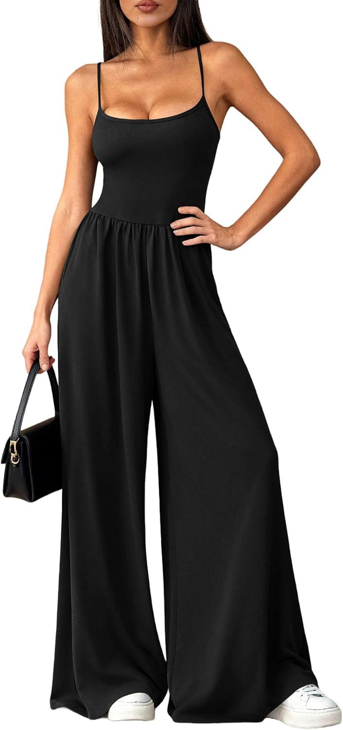 PRETTYGARDEN Summer Jumpsuits for Women Casual 2026 Wide Leg Date Night Rompers Sleeveless Beach Vacation One Piece Outfits(Black)
