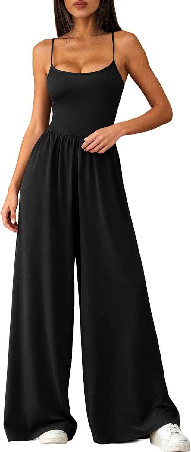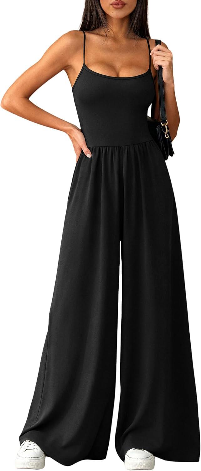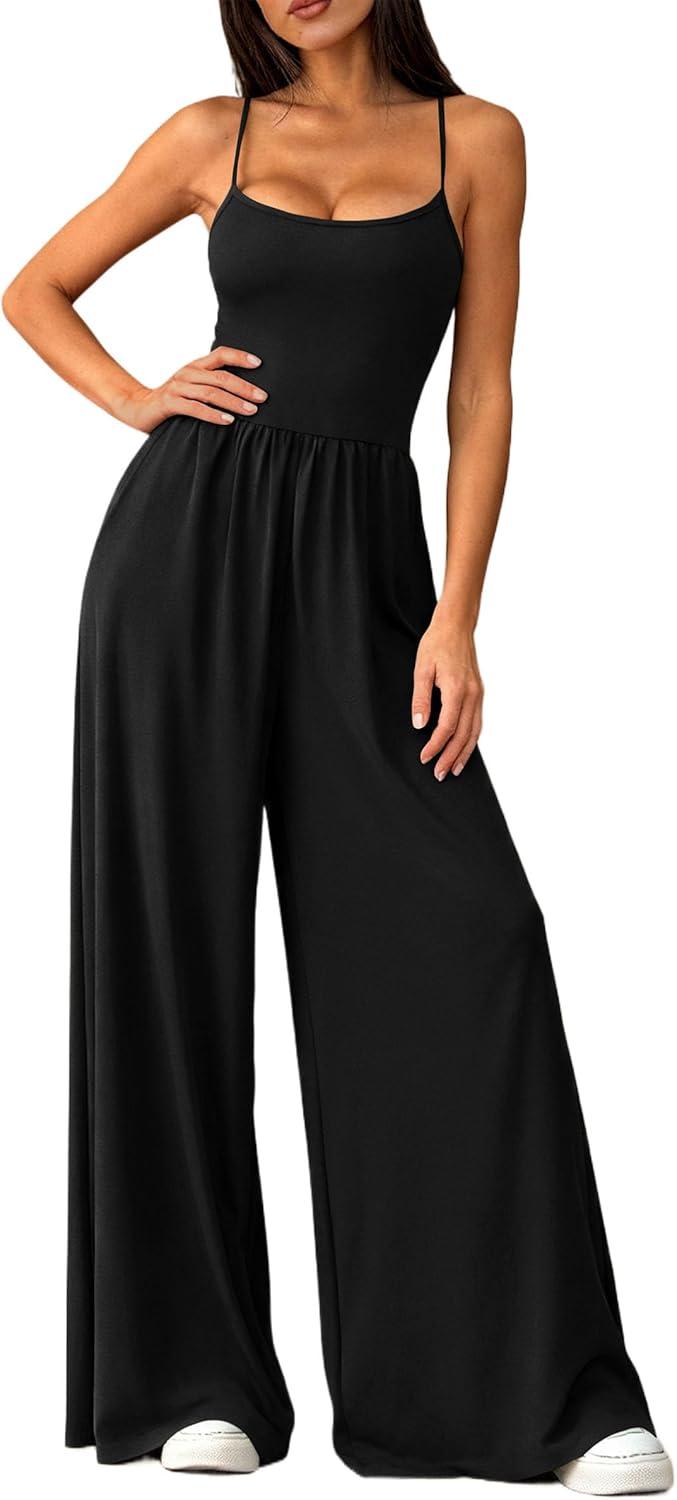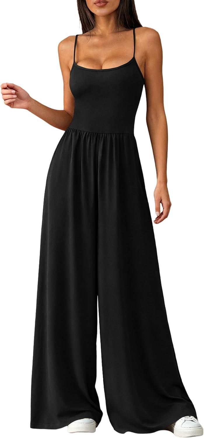 PRETTYGARDEN Summer Jumpsuits for Women Casual 2026 Wide Leg Date Night Rompers Sleeveless Beach Vacation One Piece Outfits(Black)