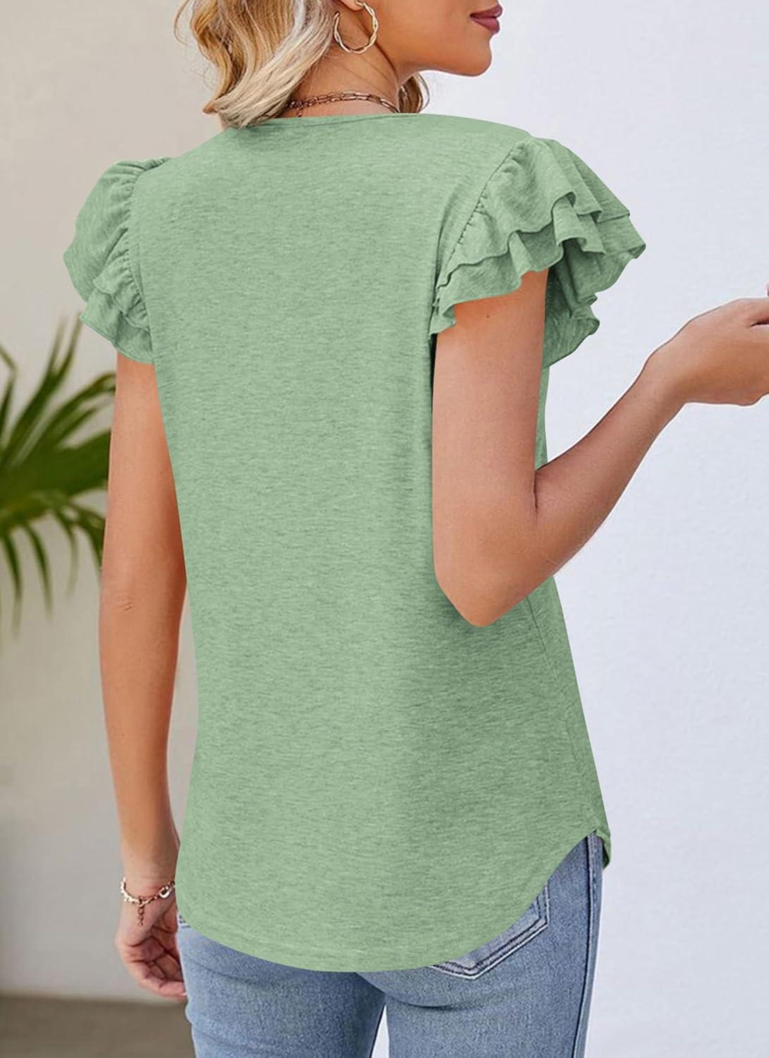 Get up to 60% off on PRETTYGARDEN Summer Tops for Women 2025 Spring Trendy Fashion Clothes Casual Ruffle V Neck Short Sleeve Shirts Blouses(Green) styles during our winter sale event.