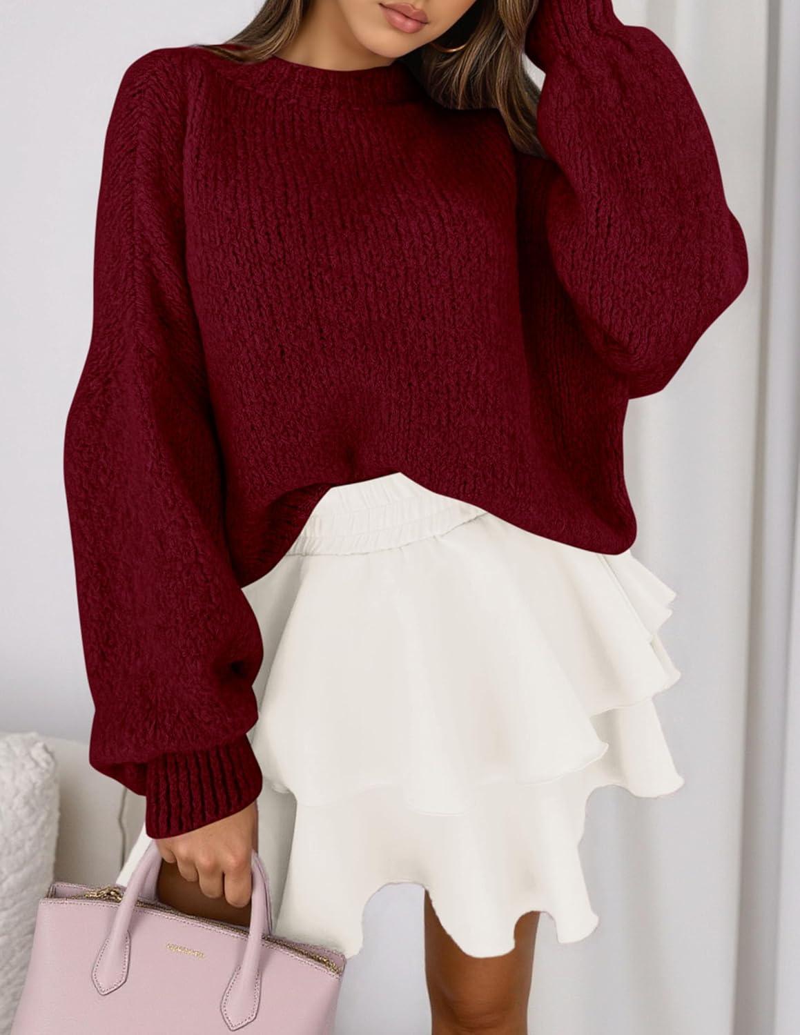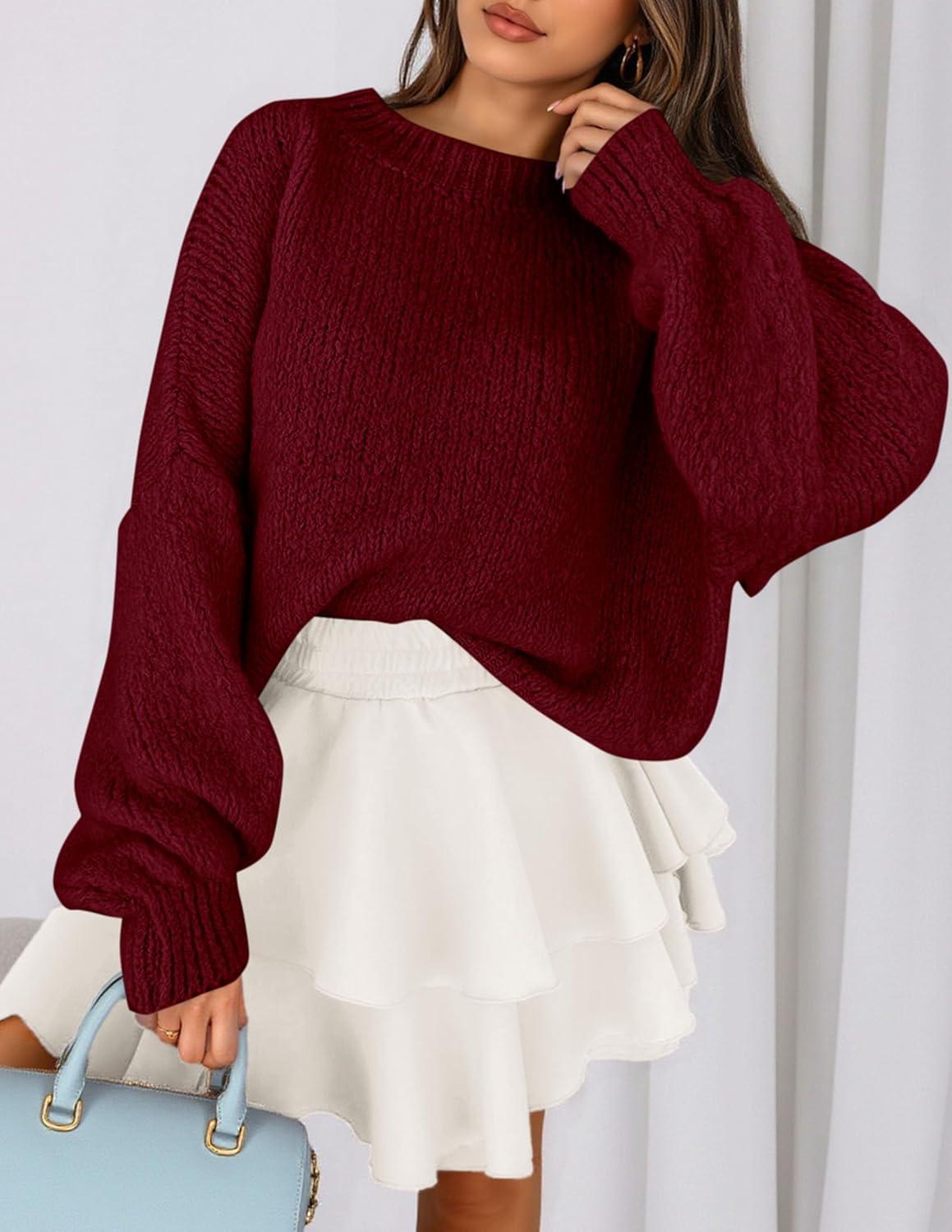 PRETTYGARDEN Sweaters for Women 2025 Fall Chunky Knit Long Sleeve Crew Neck Oversized Pullover Tops Winter Fashion Clothing(Burgundy)