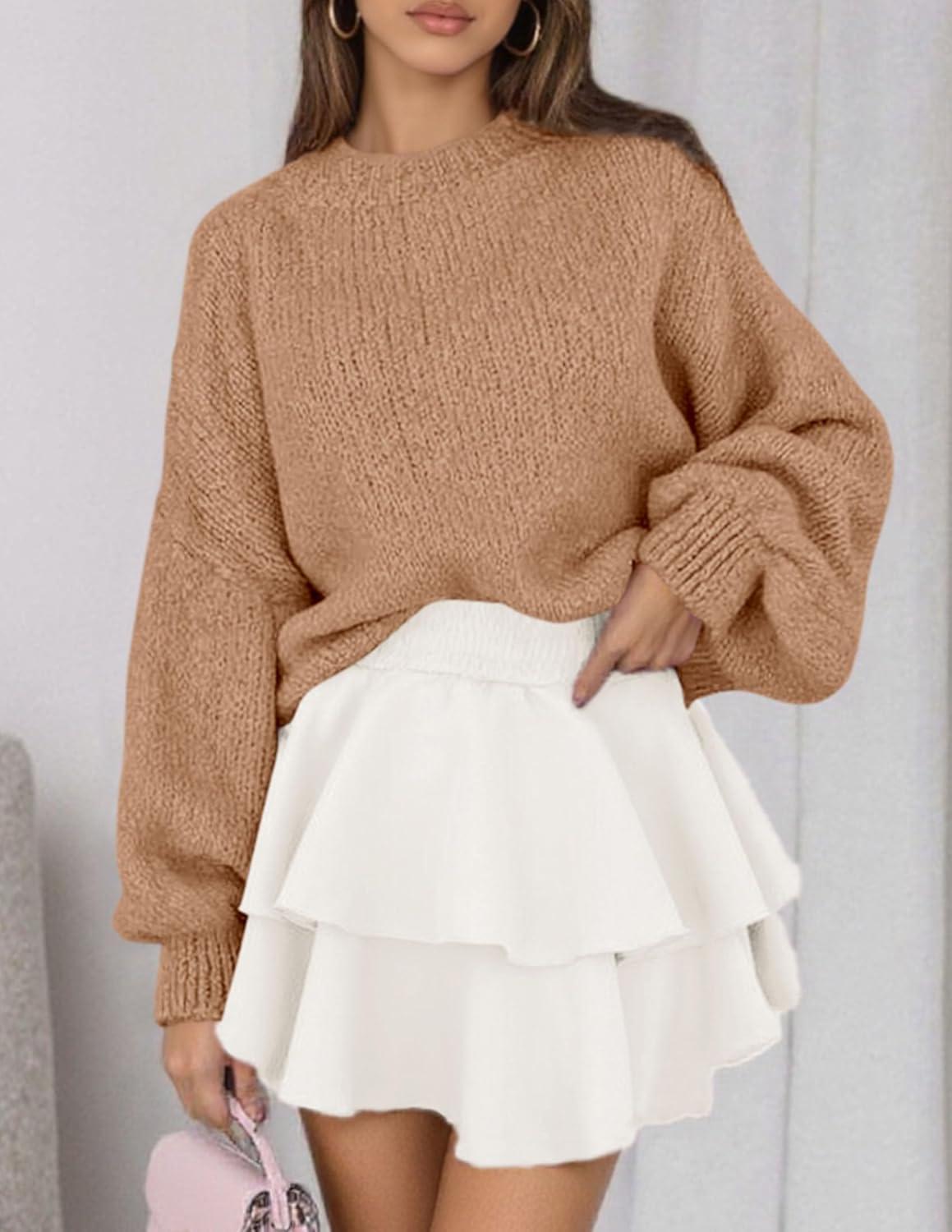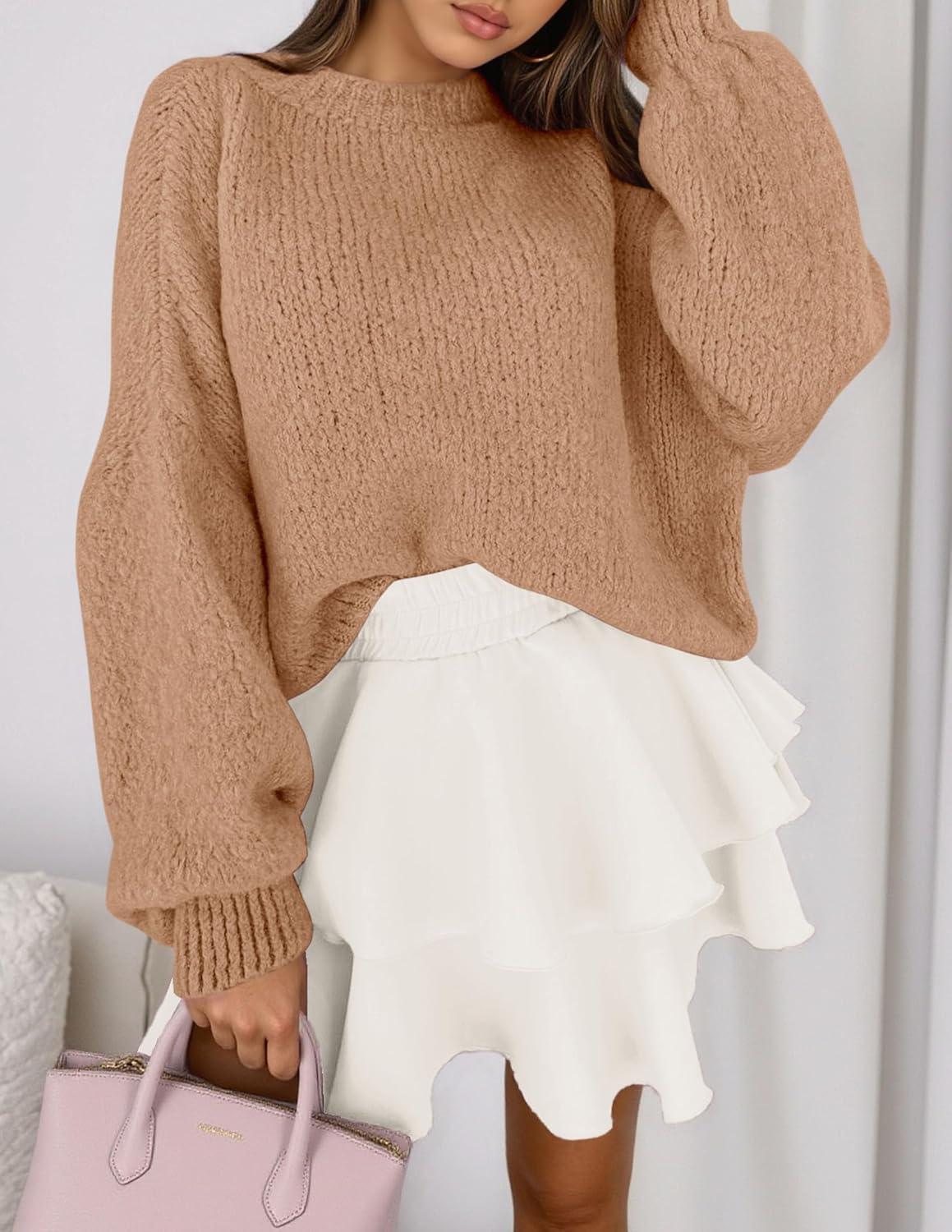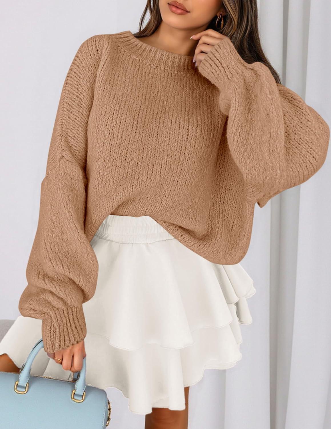 imagePRETTYGARDEN Sweaters for Women 2025 Fall Chunky Knit Long Sleeve Crew Neck Oversized Pullover Tops Winter Fashion ClothingKhaki