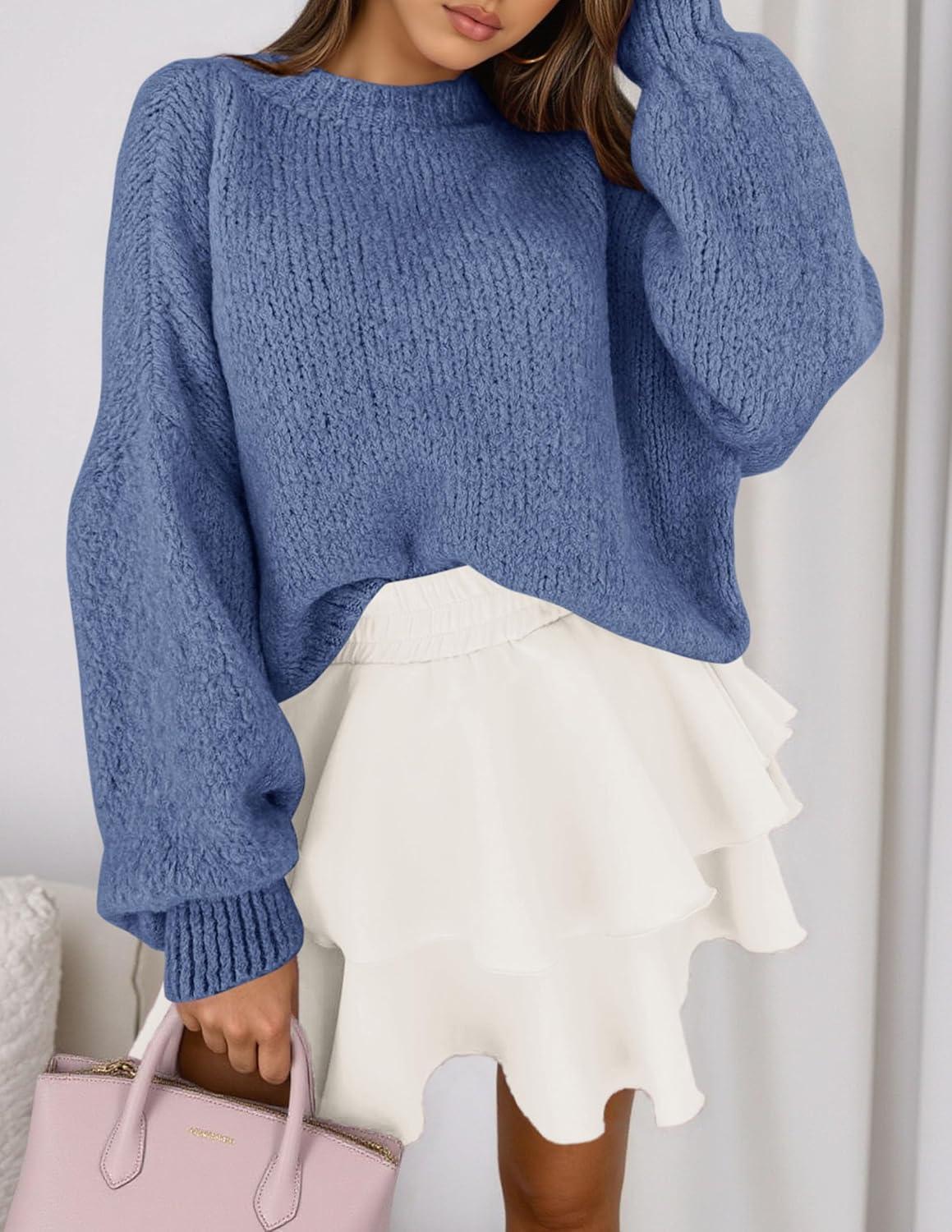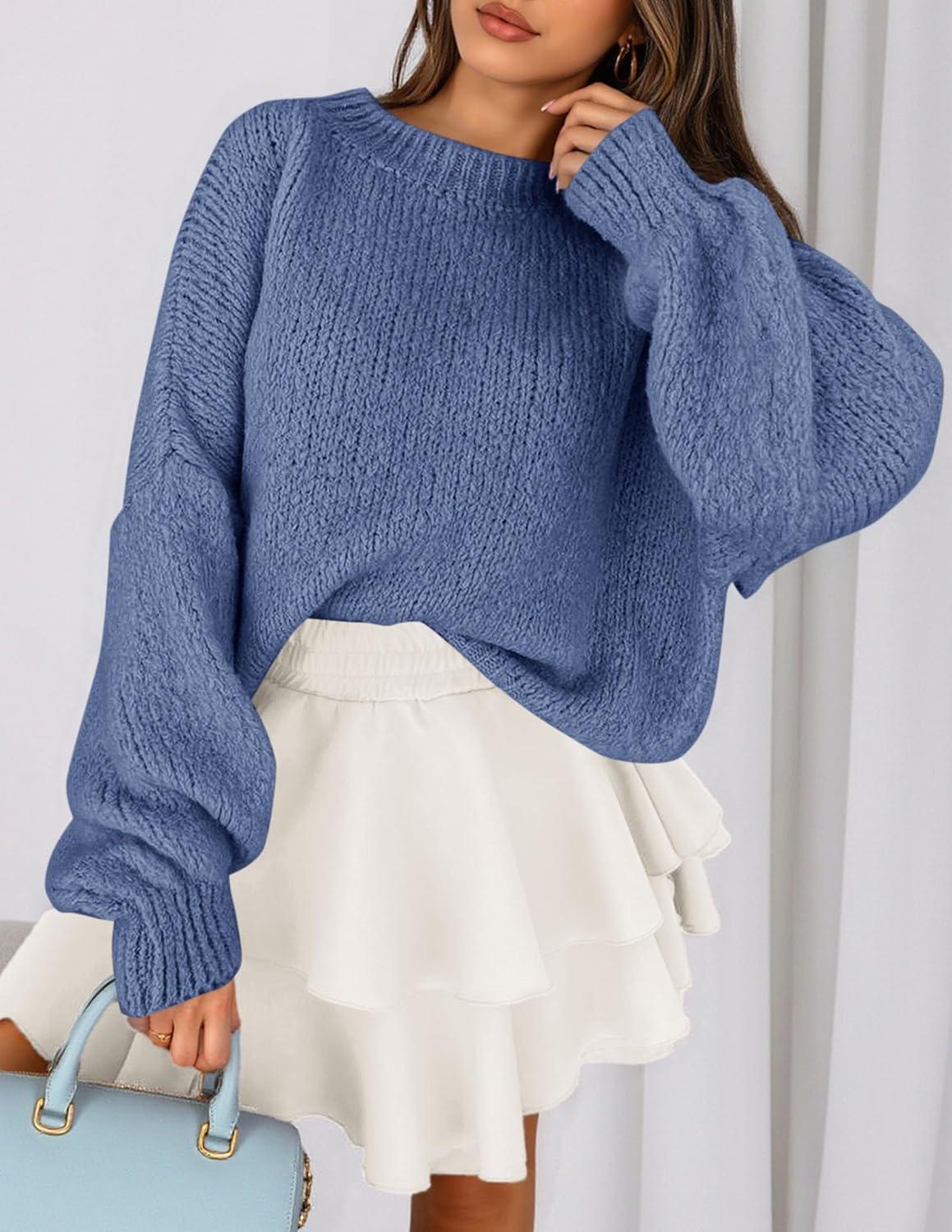 PRETTYGARDEN Sweaters for Women 2025 Fall Chunky Knit Long Sleeve Crew Neck Oversized Pullover Tops Winter Fashion Clothing(Mist Blue)