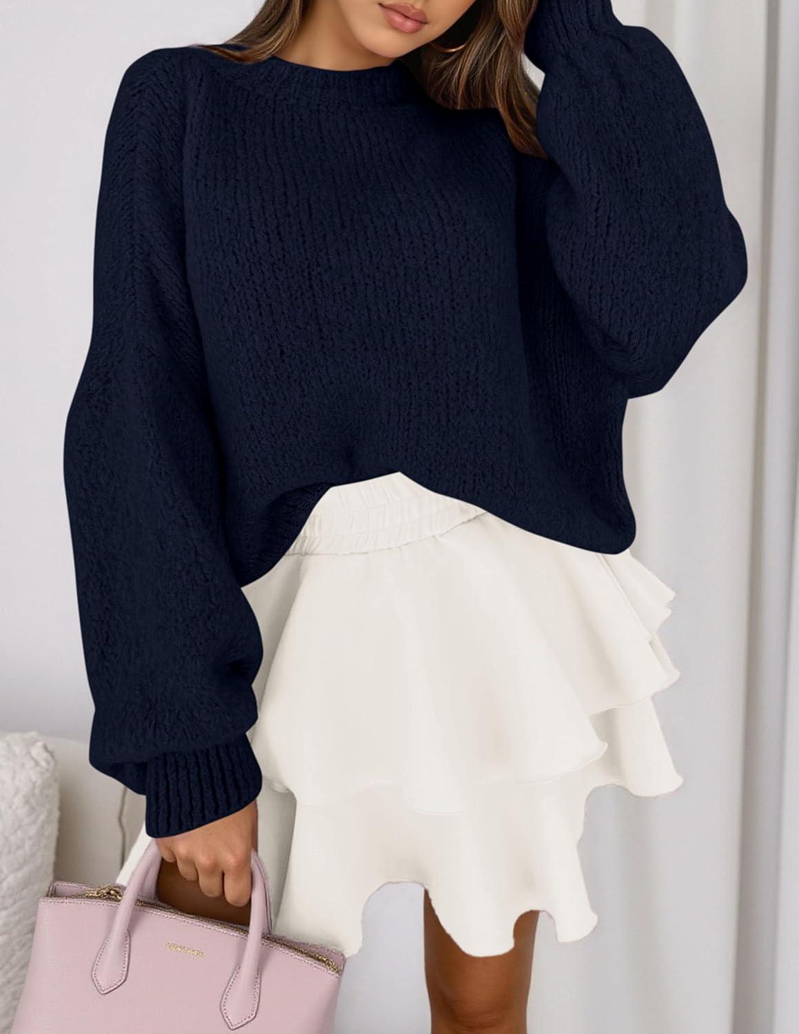 PRETTYGARDEN Sweaters for Women 2025 Fall Chunky Knit Long Sleeve Crew Neck Oversized Pullover Tops Winter Fashion Clothing(Navy Blue)