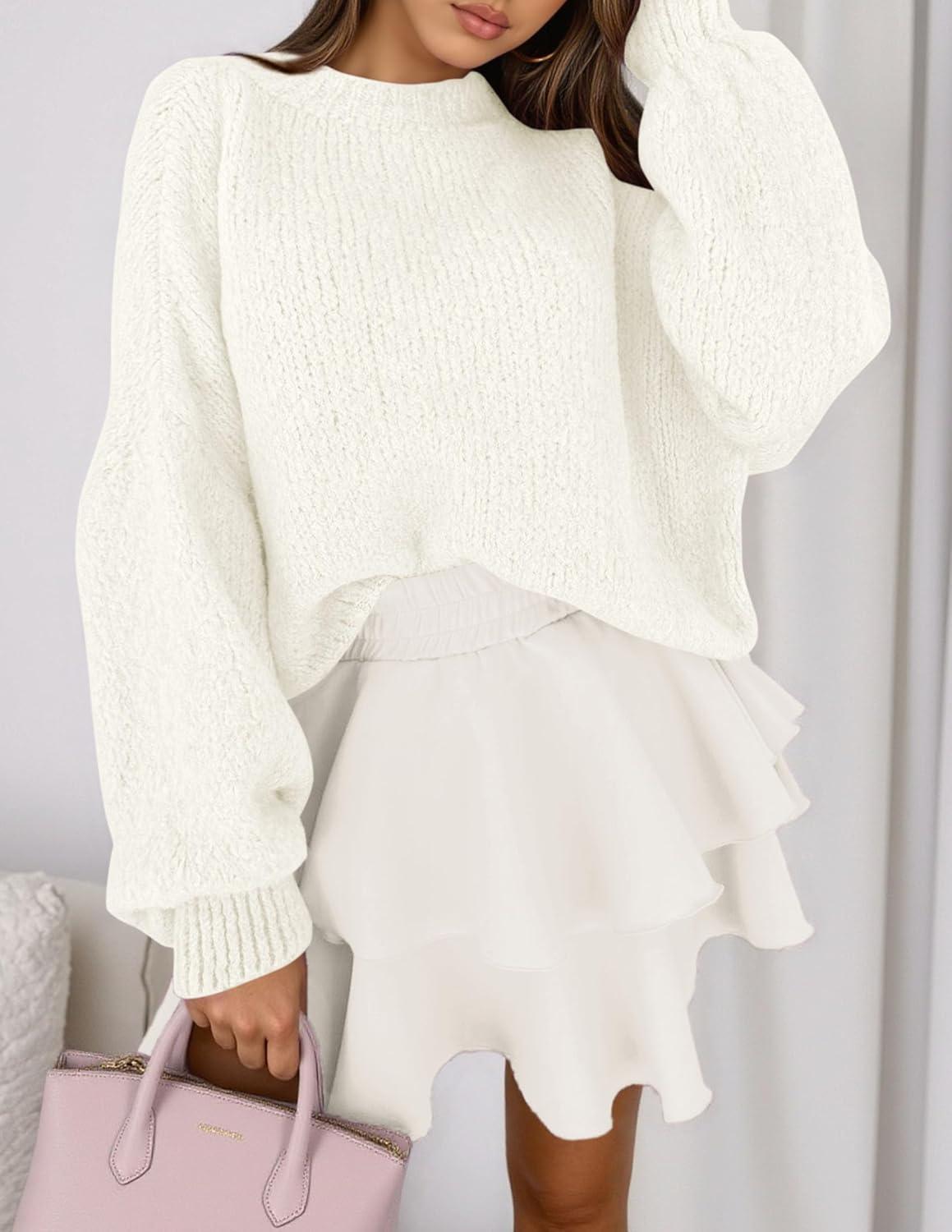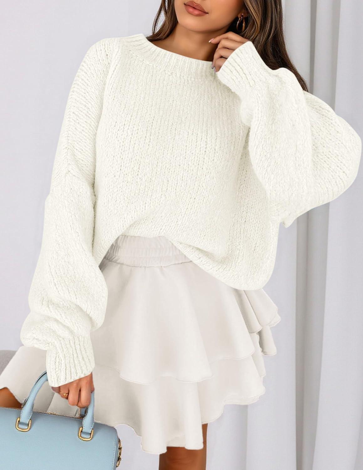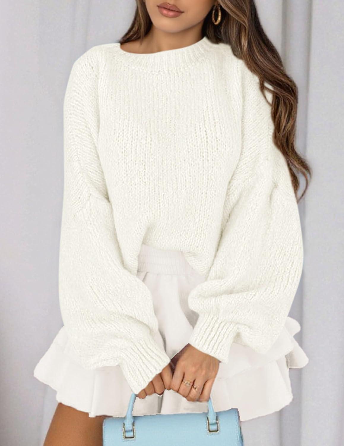 PRETTYGARDEN Sweaters for Women 2025 Fall Chunky Knit Long Sleeve Crew Neck Oversized Pullover Tops Winter Fashion Clothing(White)