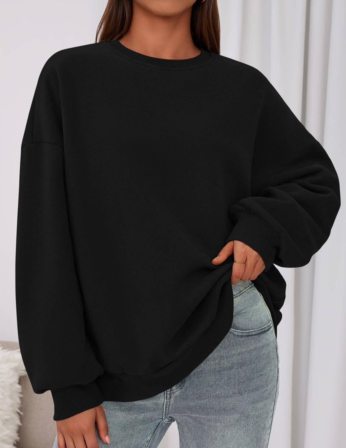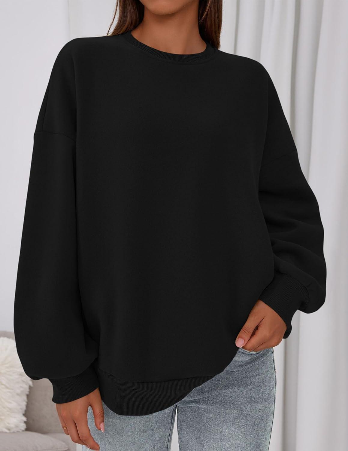 PRETTYGARDEN Sweatshirt for Women Oversized Crewneck Long Sleeve Pullover Fleece Top 2025 Fall Winter Fashion Outfits Clothes(Black)