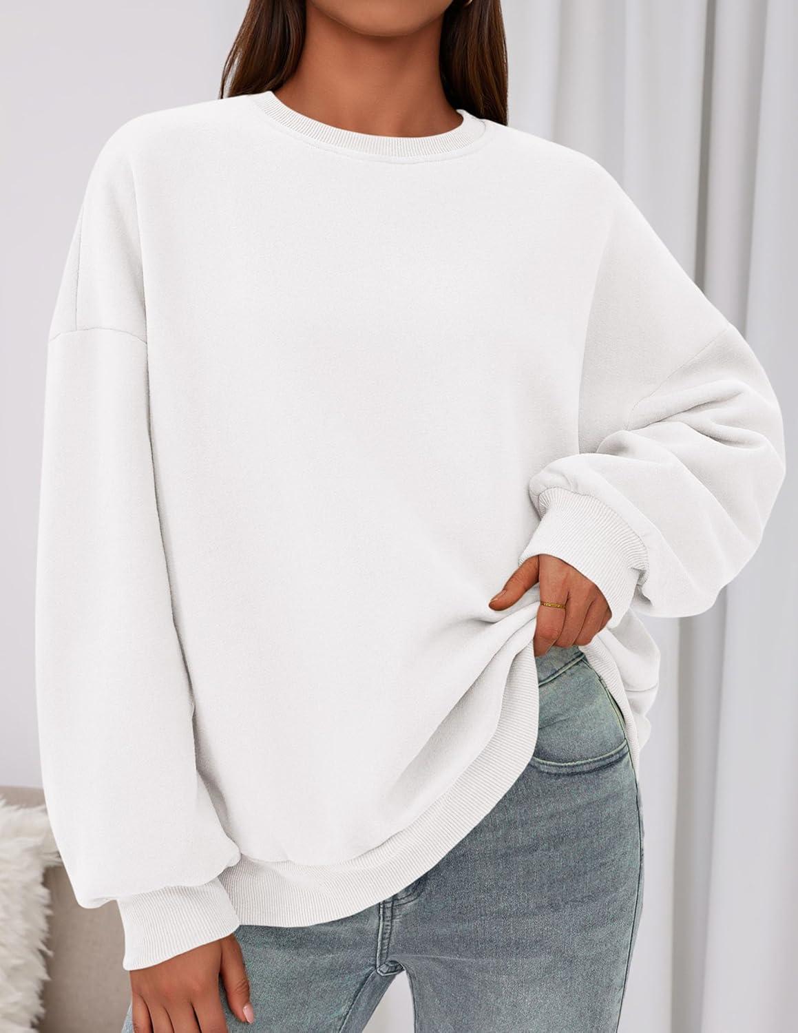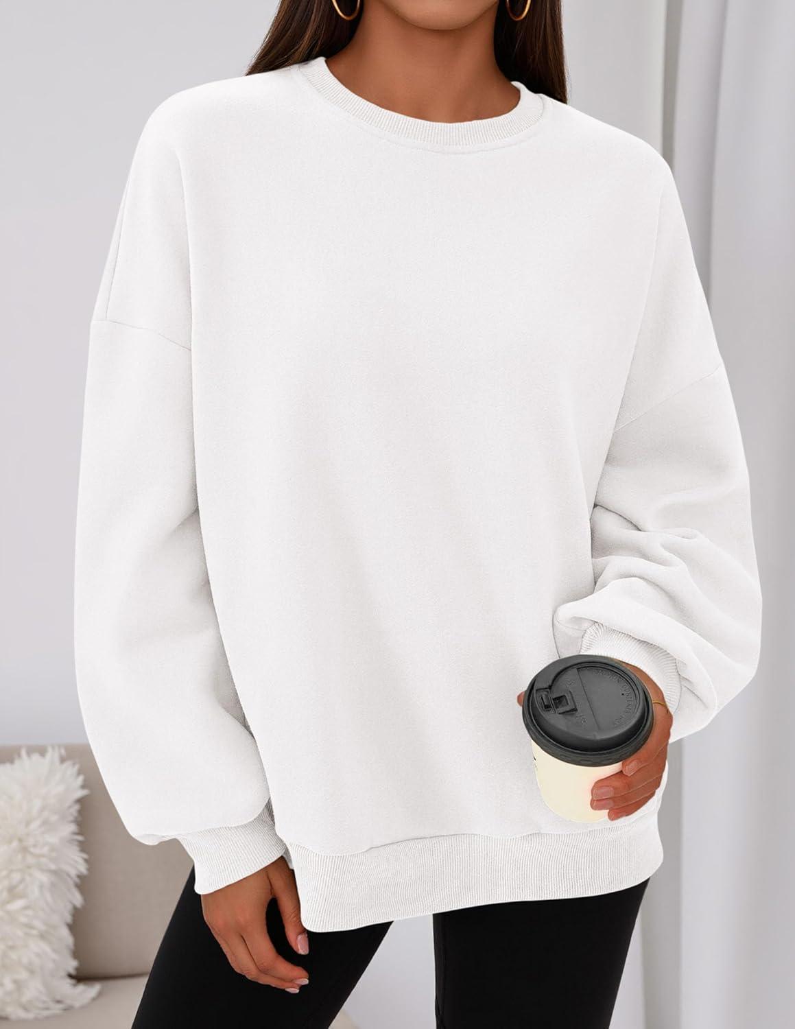 PRETTYGARDEN Sweatshirt for Women Oversized Crewneck Long Sleeve Pullover Fleece Top 2025 Fall Winter Fashion Outfits Clothes(White)
