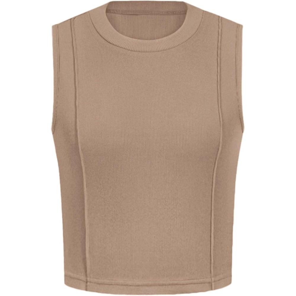 PRETTYGARDEN Tank Top for Women 2026 Summer Casual Sleeveless Ribbed Slim Fitted Basic Tee Shirts Spring Fashion Y2k Clothes(Khaki)