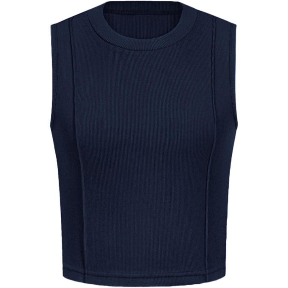 PRETTYGARDEN Tank Top for Women 2026 Summer Casual Sleeveless Ribbed Slim Fitted Basic Tee Shirts Spring Fashion Y2k Clothes(Navy)