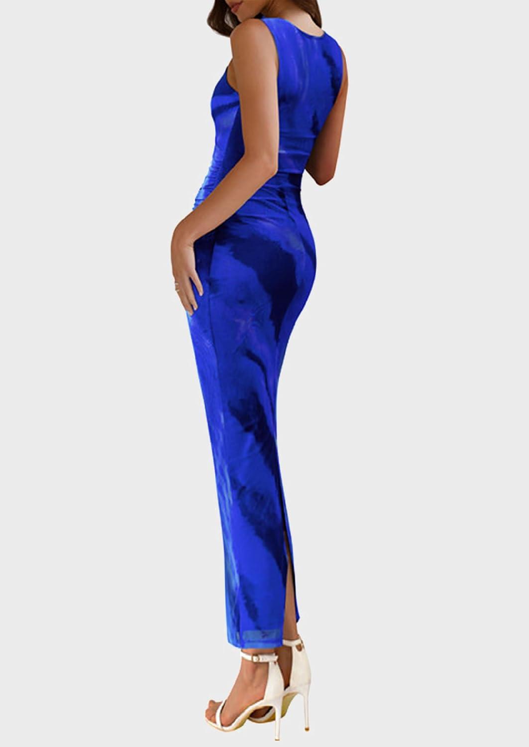 imagePRETTYGARDEN Wedding Guest Dresses for Women 2025 Summer Spring Floral Bodycon Sleeveless Mesh Maxi Long DressBlue Watercolour