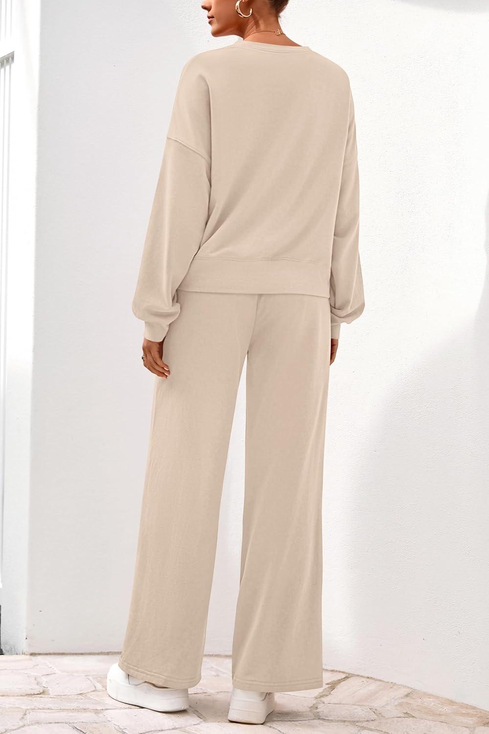 PRETTYGARDEN Women 2 Piece Outfits 2025 Fall Sweatsuits Crewneck Sweatshirt Wide Leg Sweatpants Lounge Sets Tracksuit(Beige)