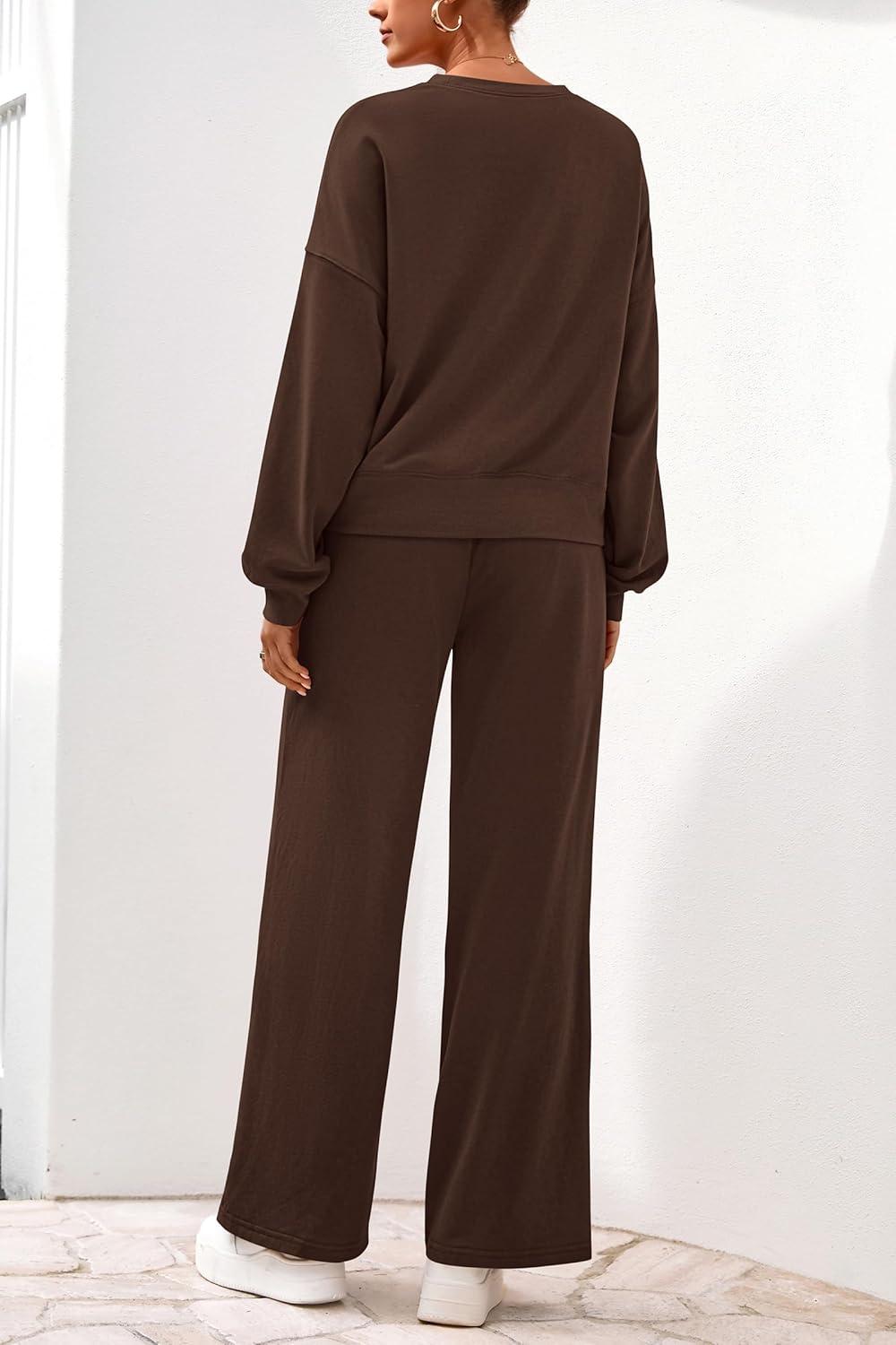 PRETTYGARDEN Women 2 Piece Outfits 2025 Fall Sweatsuits Crewneck Sweatshirt Wide Leg Sweatpants Lounge Sets Tracksuit(Dark Brown)