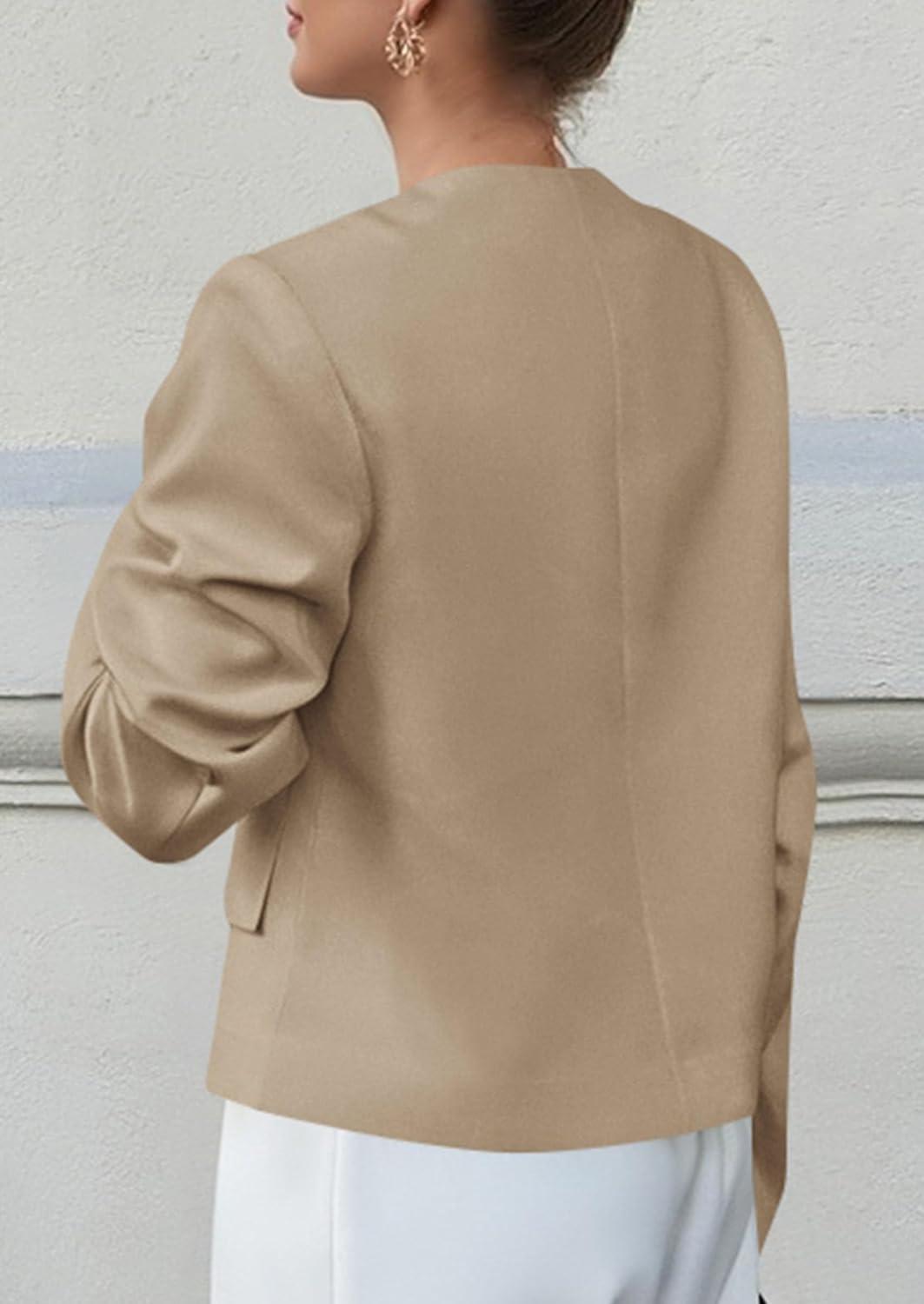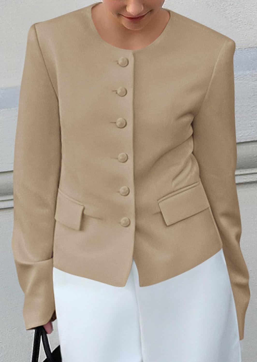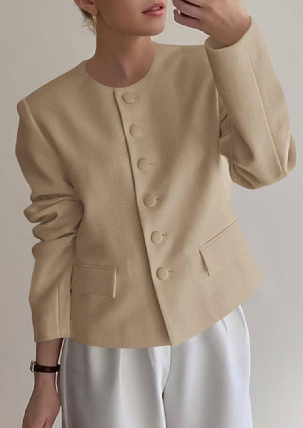 imagePRETTYGARDEN Women Blazers Business Casual Outfits 2025 Fall Fashion Long Sleeve Professional Office Work Suit Jacket ClothesLight Khaki