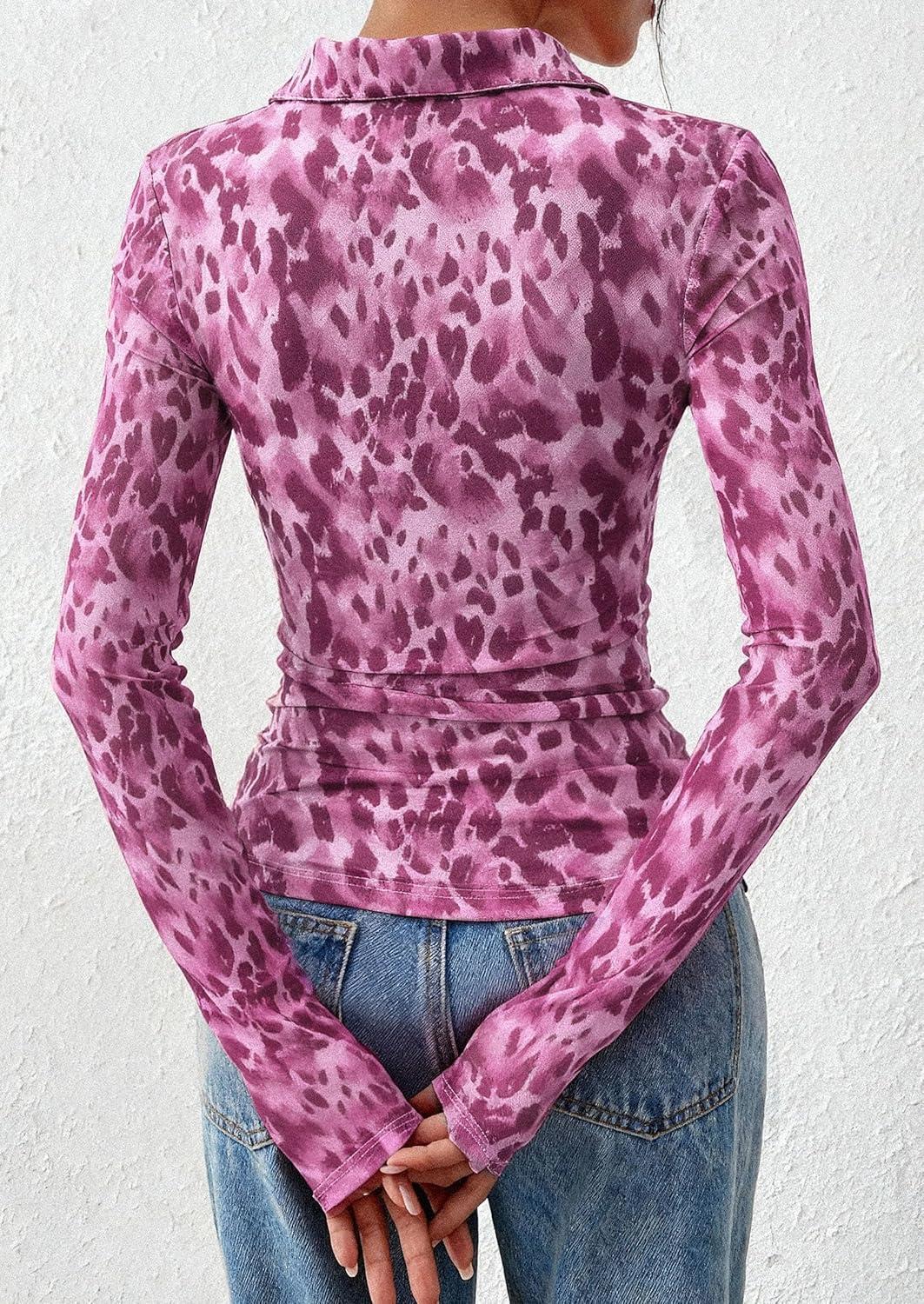 PRETTYGARDEN Women Button Down Floral Shirts 2025 Fall Trendy Long Sleeve V Neck Ruched Mesh Boho Blouse Tops Date Outfits(Leopard Purple)