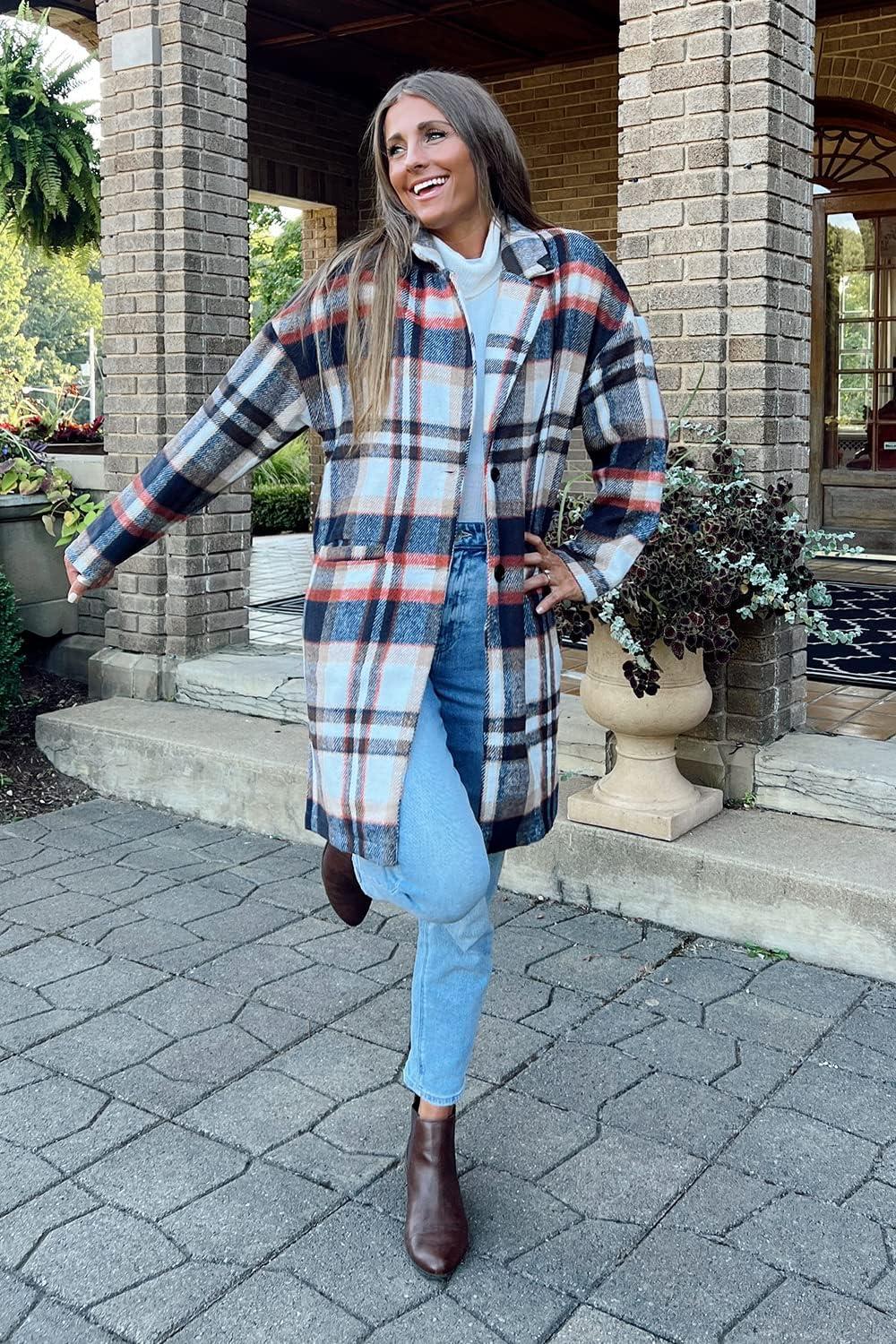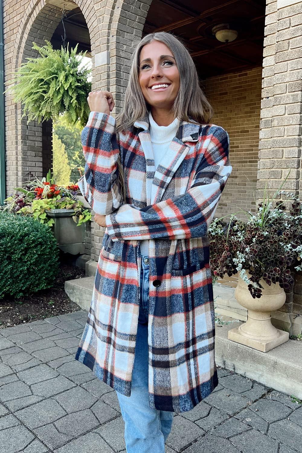 PRETTYGARDEN Women Plaid Shacket Jacket Trendy Fall Casual Button Wool Blend Tartan Trench Coat Winter Clothing with Pockets(Grey White)