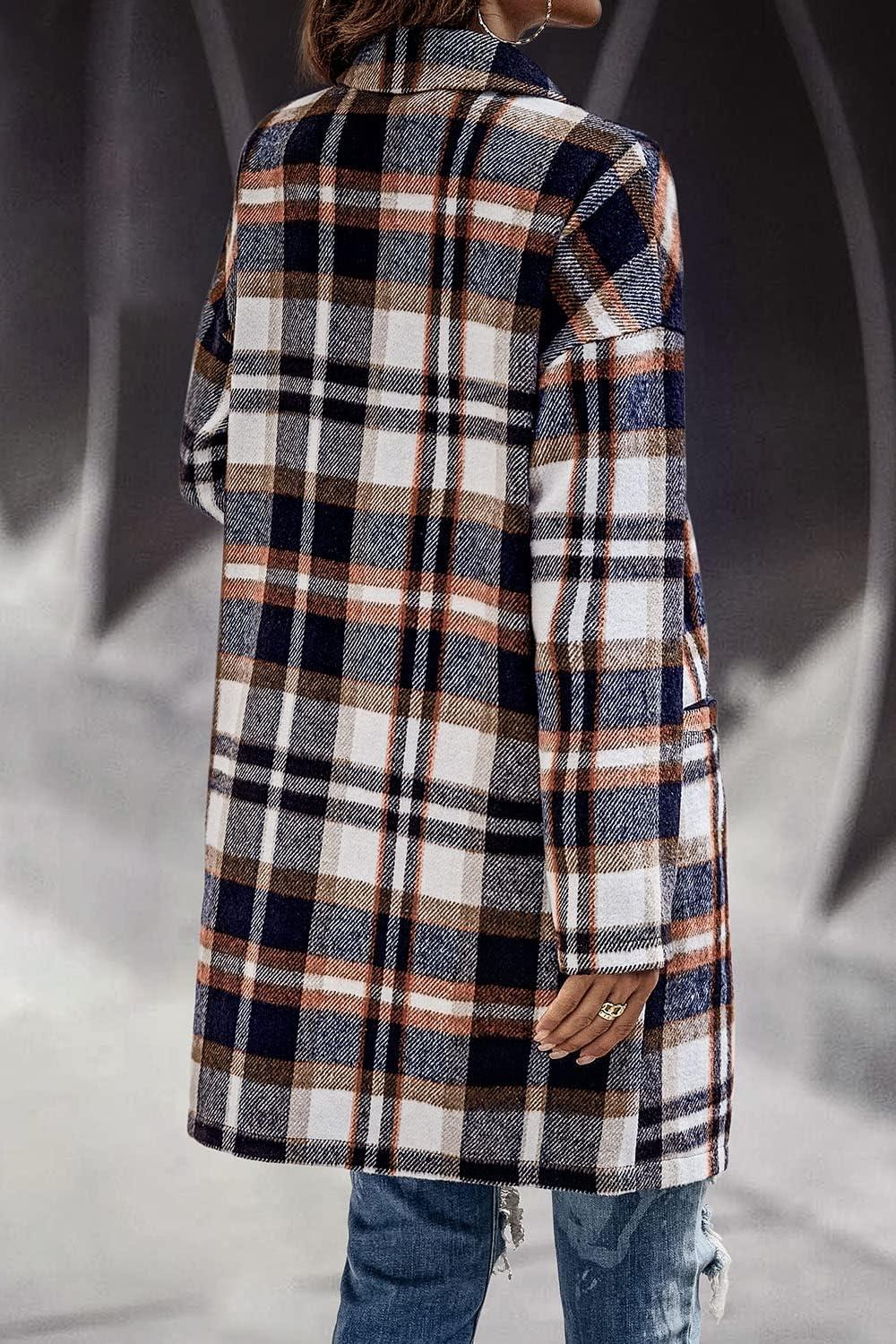 PRETTYGARDEN Women Plaid Shacket Jacket Trendy Fall Casual Button Wool Blend Tartan Trench Coat Winter Clothing with Pockets(Brown)