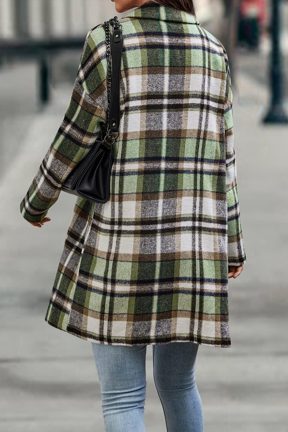 PRETTYGARDEN Women Plaid Shacket Jacket Trendy Fall Casual Button Wool Blend Tartan Trench Coat Winter Clothing with Pockets(Green)