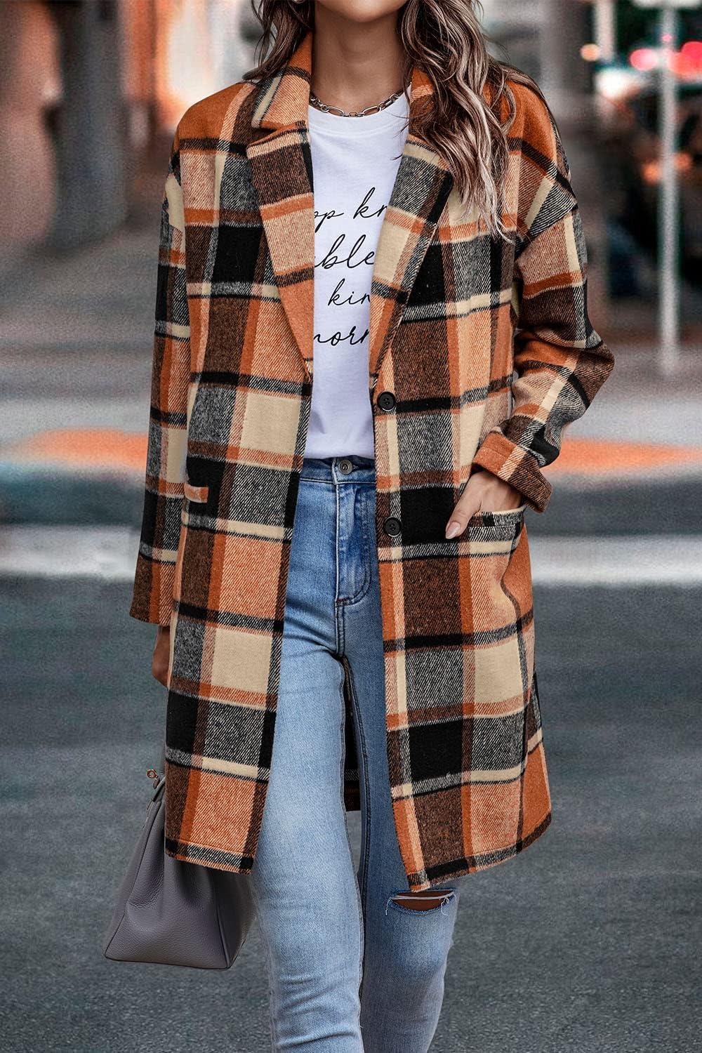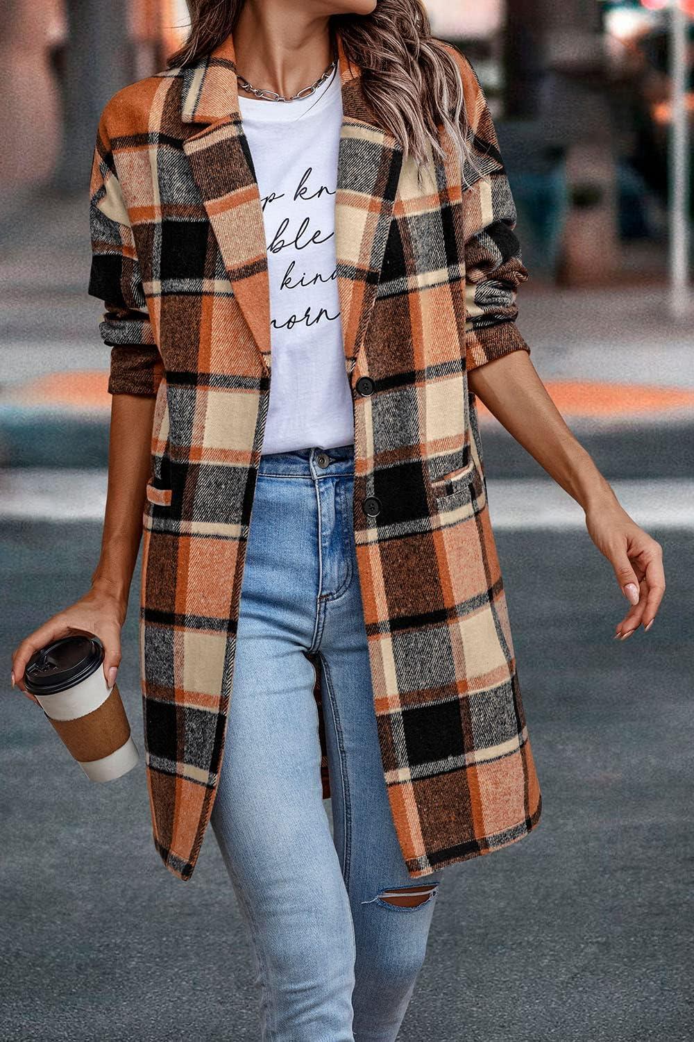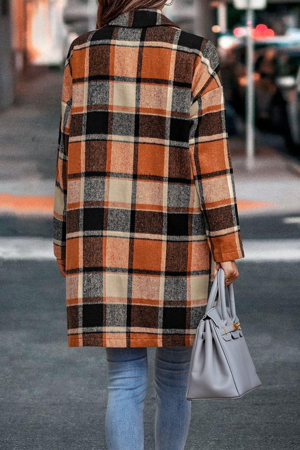 PRETTYGARDEN Women Plaid Shacket Jacket Trendy Fall Casual Button Wool Blend Tartan Trench Coat Winter Clothing with Pockets(Orange)