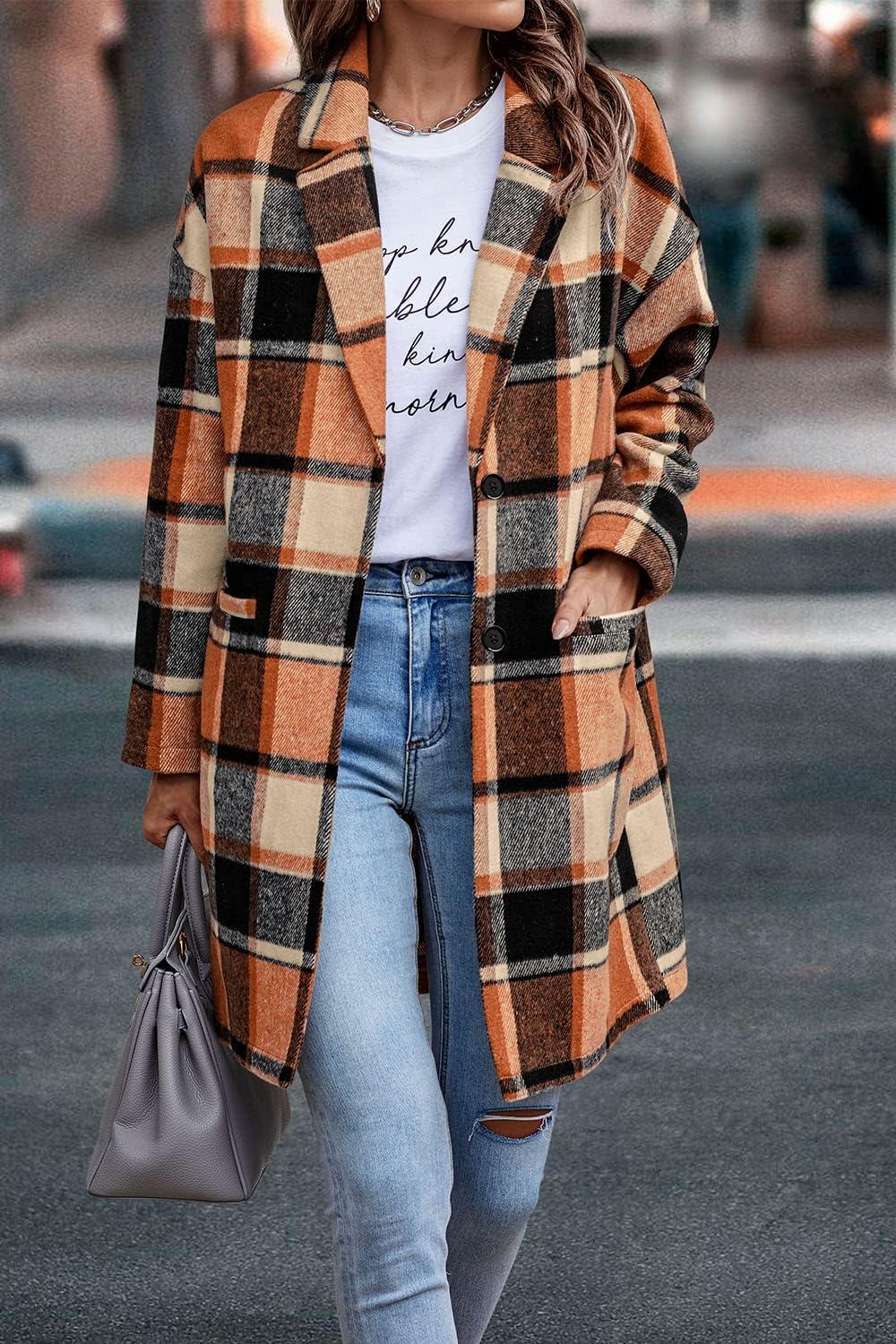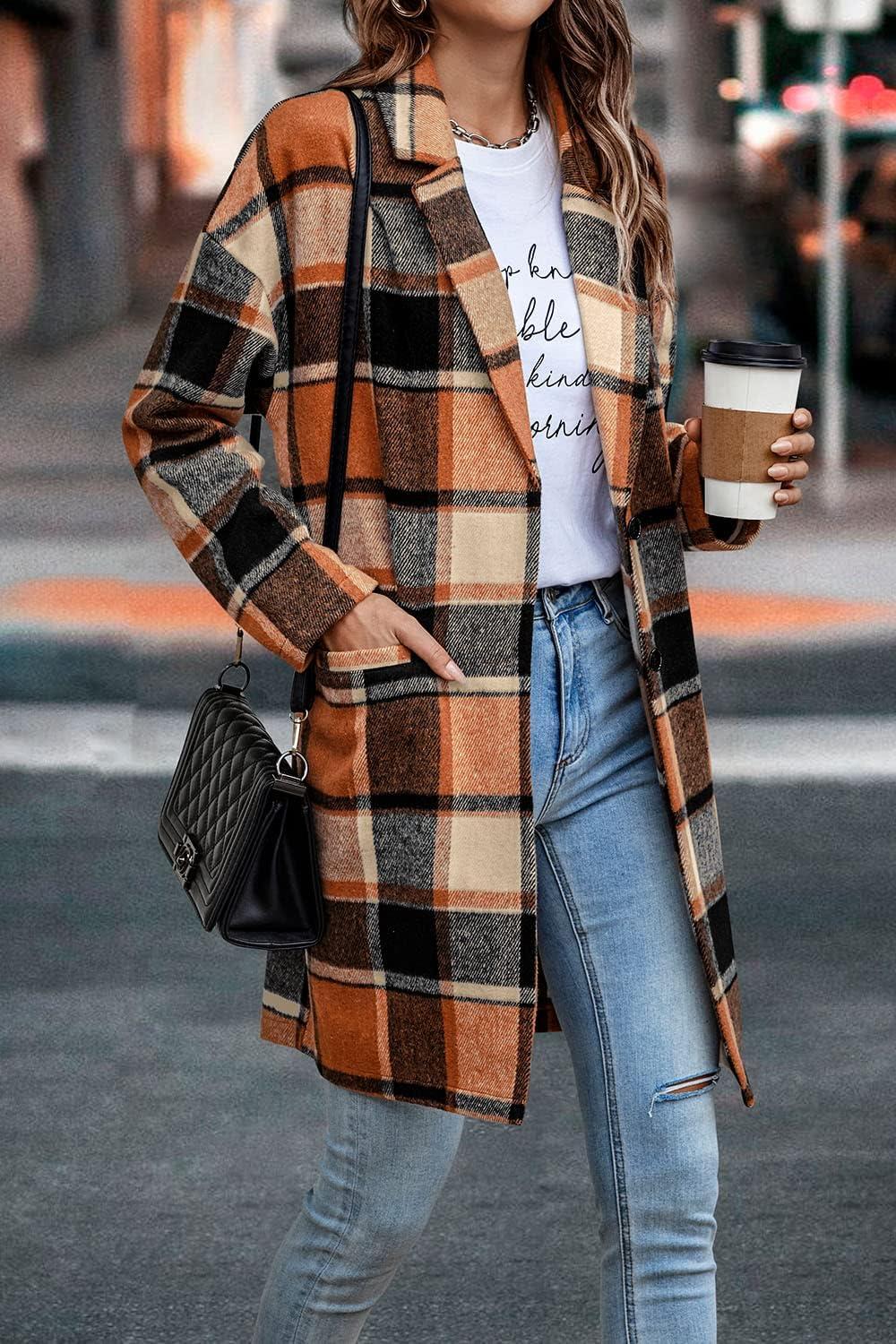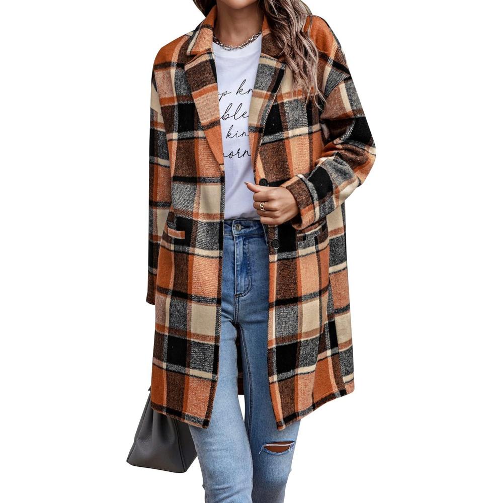 PRETTYGARDEN Women Plaid Shacket Jacket Trendy Fall Casual Button Wool Blend Tartan Trench Coat Winter Clothing with Pockets(Orange)