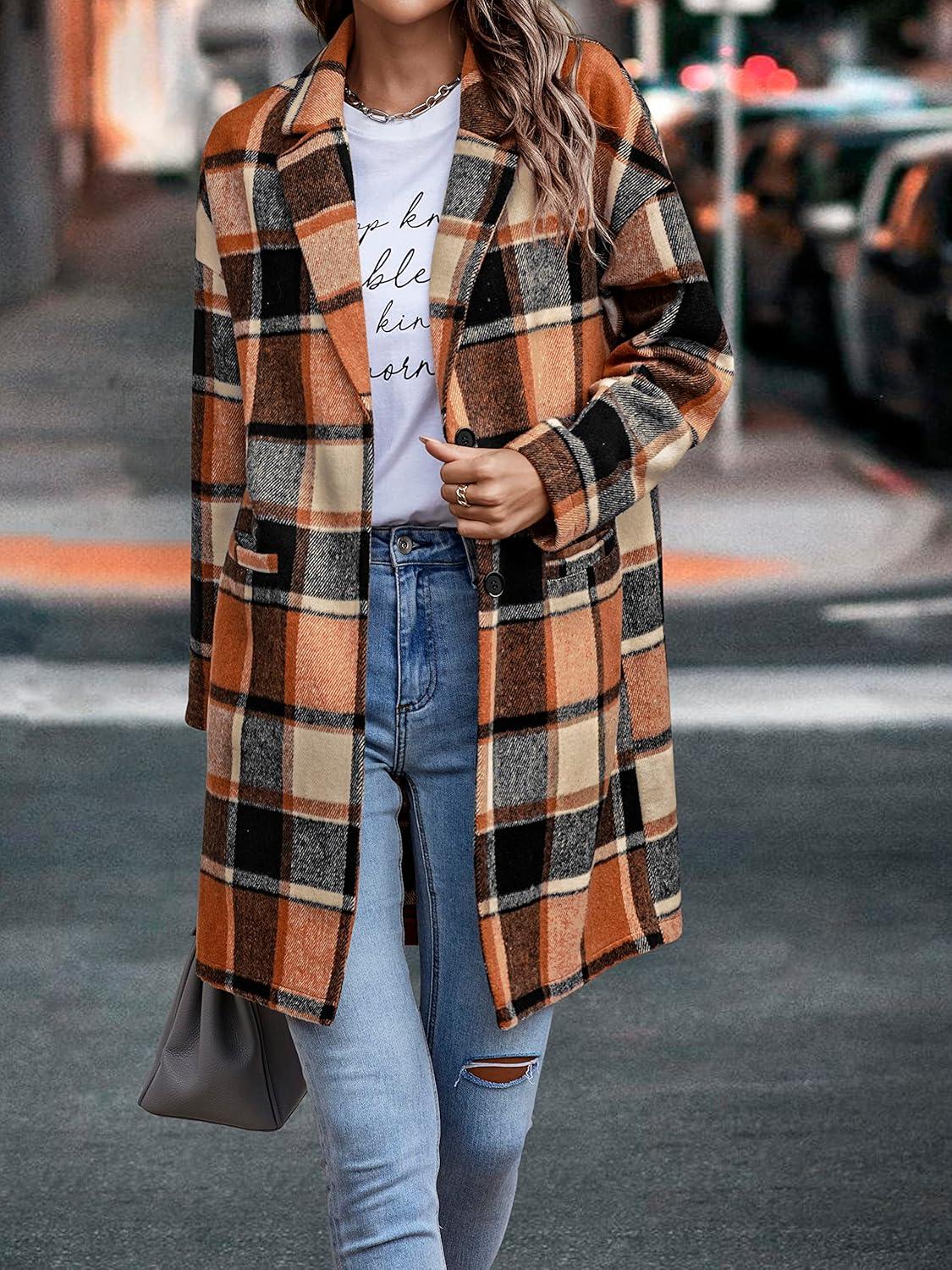 imagePRETTYGARDEN Women Plaid Shacket Jacket Trendy Fall Casual Button Wool Blend Tartan Trench Coat Winter Clothing with PocketsOrange