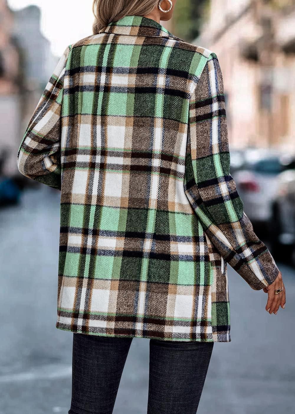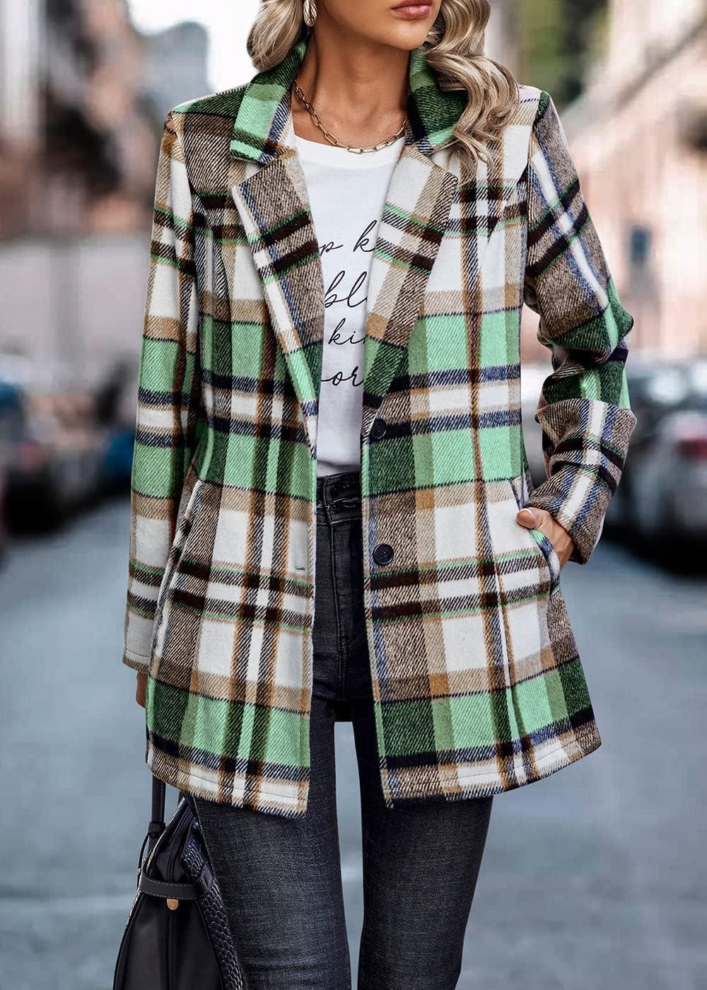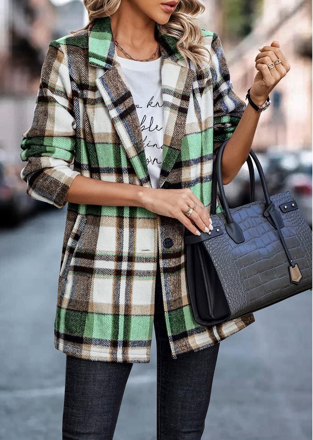 PRETTYGARDEN Women Plaid Shacket Jacket Trendy Fall Casual Button Wool Blend Tartan Trench Coat Winter Clothing with Pockets(Short Style Green)