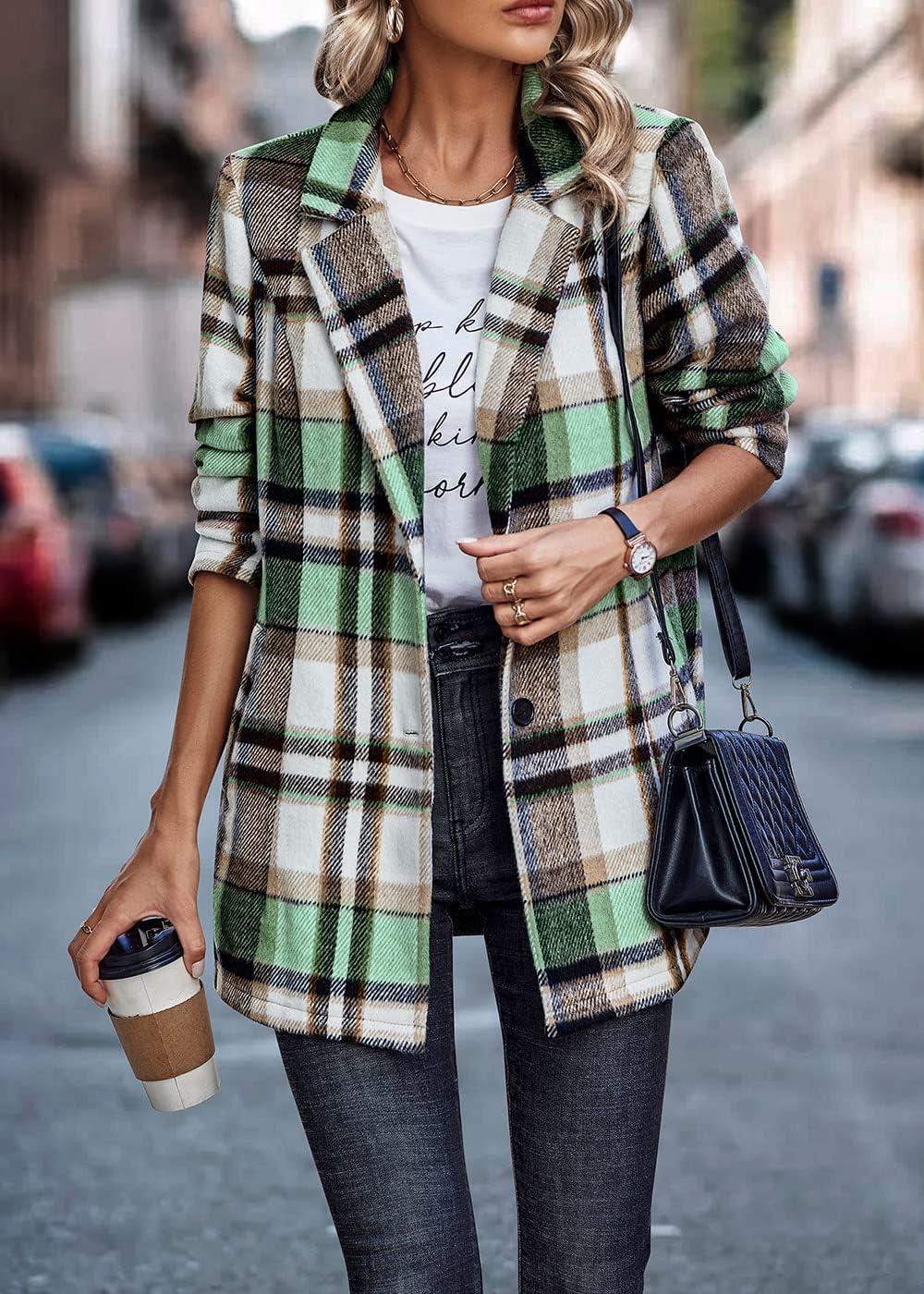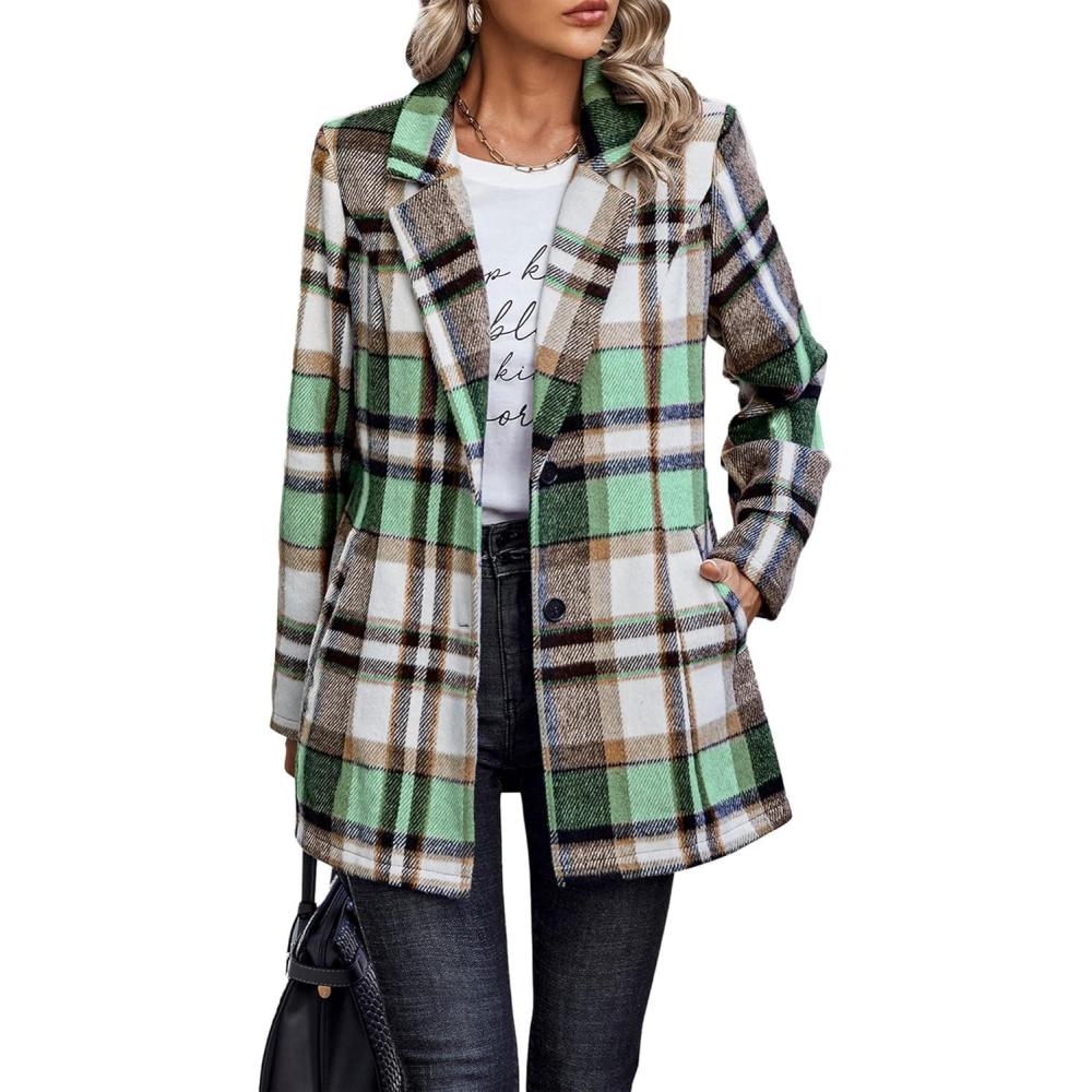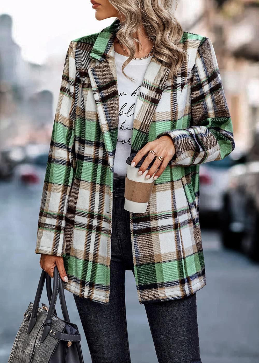 PRETTYGARDEN Women Plaid Shacket Jacket Trendy Fall Casual Button Wool Blend Tartan Trench Coat Winter Clothing with Pockets(Short Style Green)