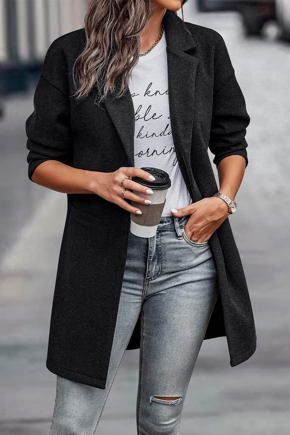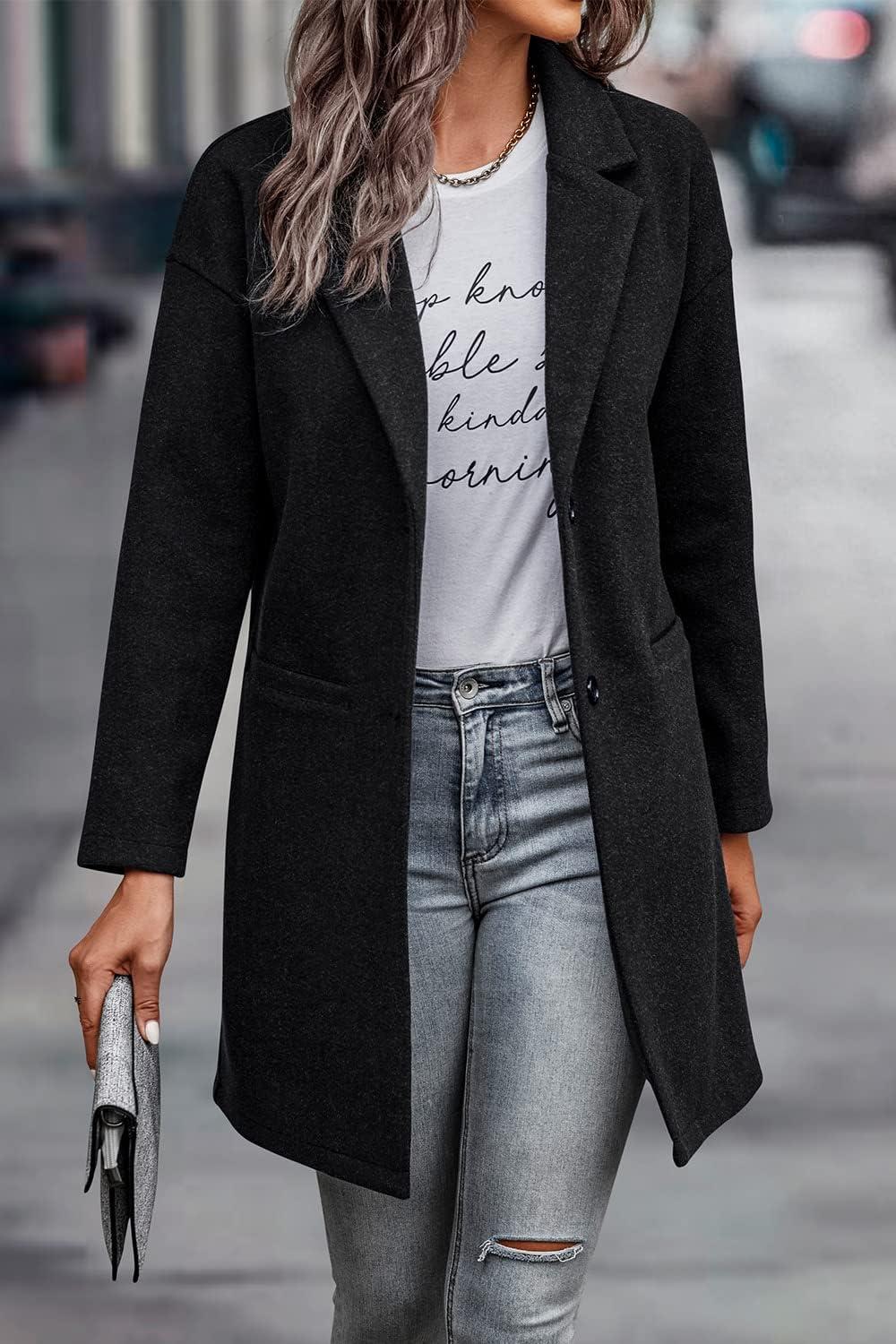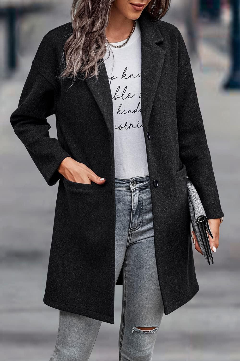 PRETTYGARDEN Women Plaid Shacket Jacket Trendy Fall Casual Button Wool Blend Tartan Trench Coat Winter Clothing with Pockets(Solid Black)
