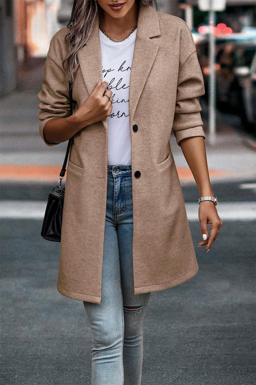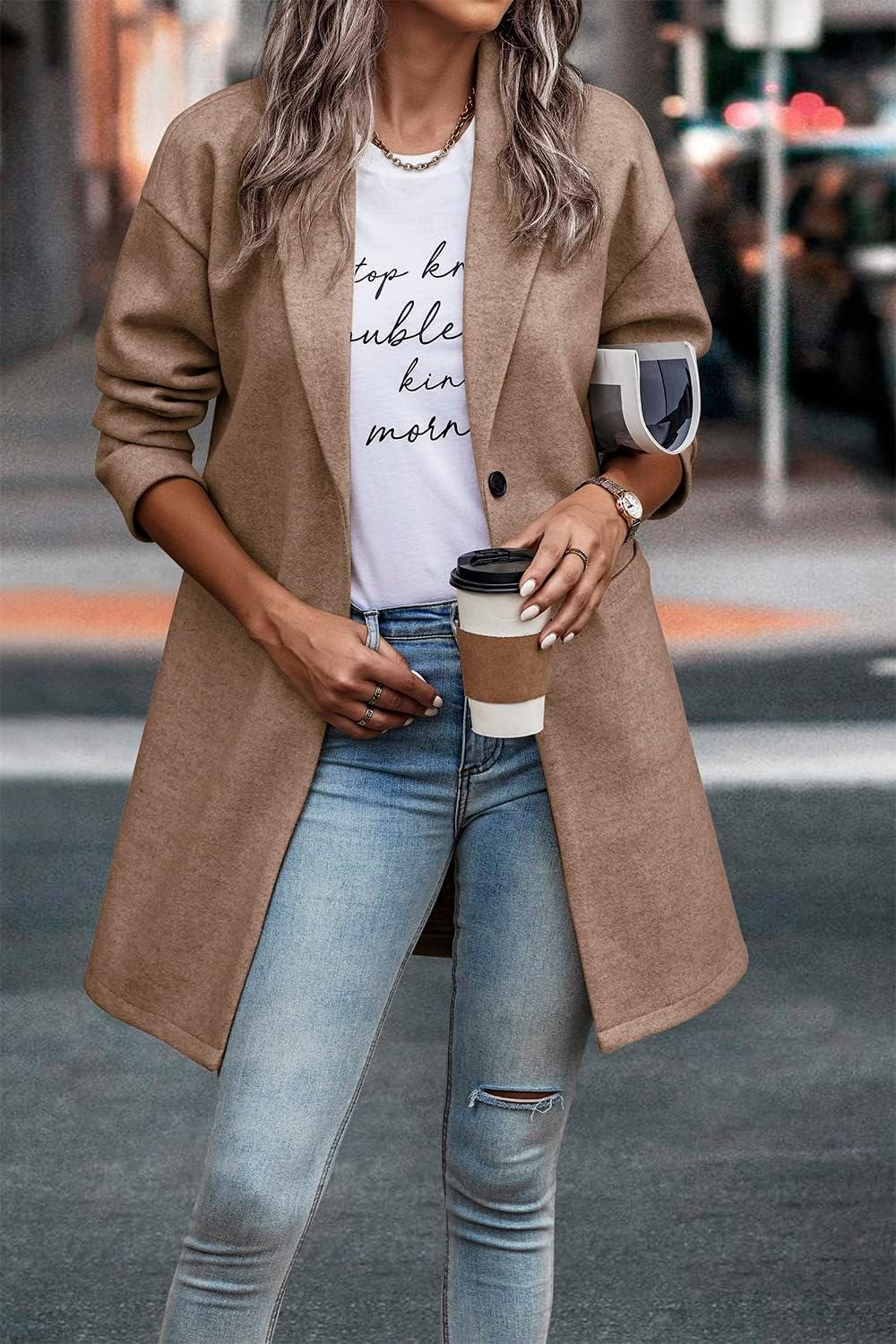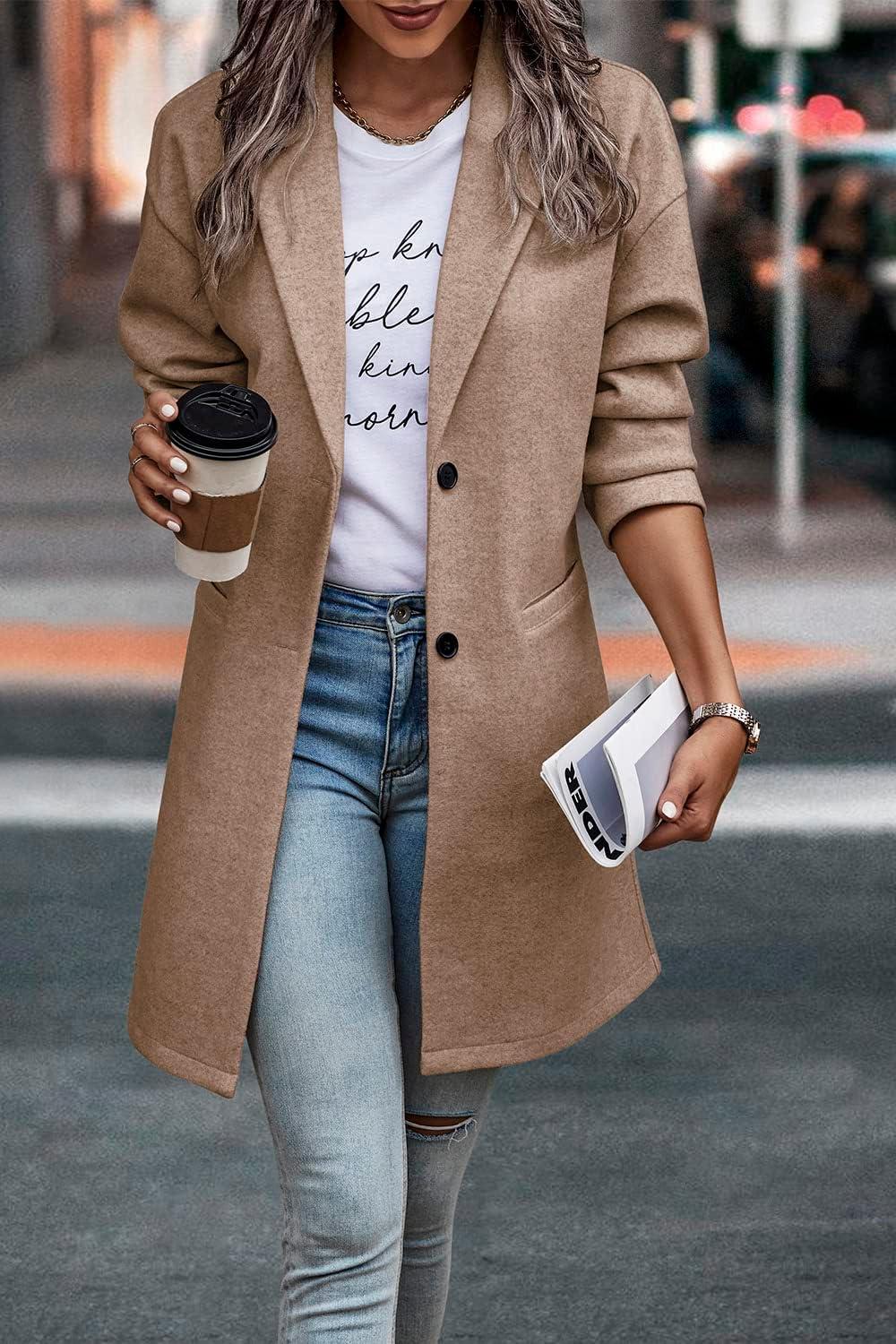 PRETTYGARDEN Women Plaid Shacket Jacket Trendy Fall Casual Button Wool Blend Tartan Trench Coat Winter Clothing with Pockets(Solid Khaki)