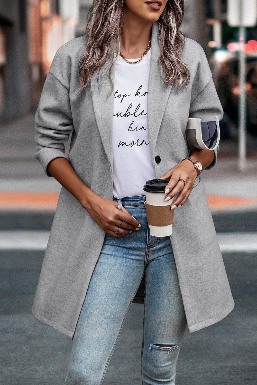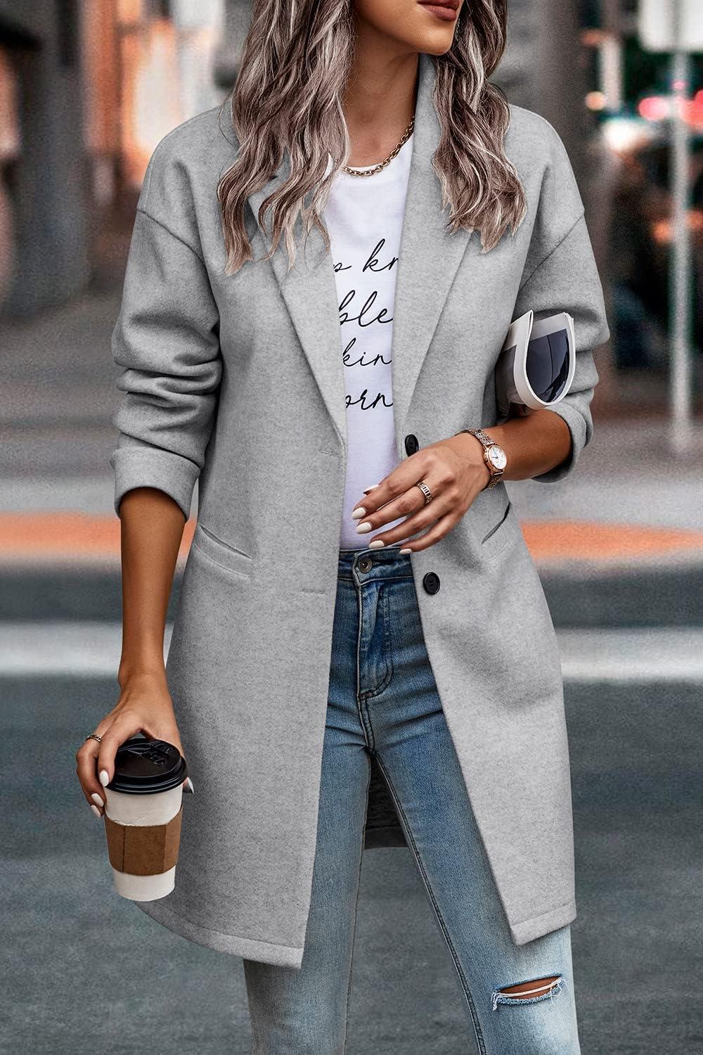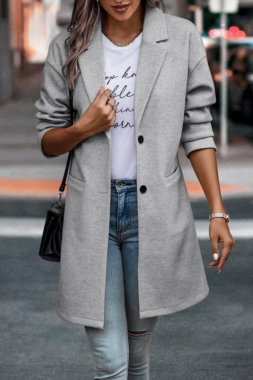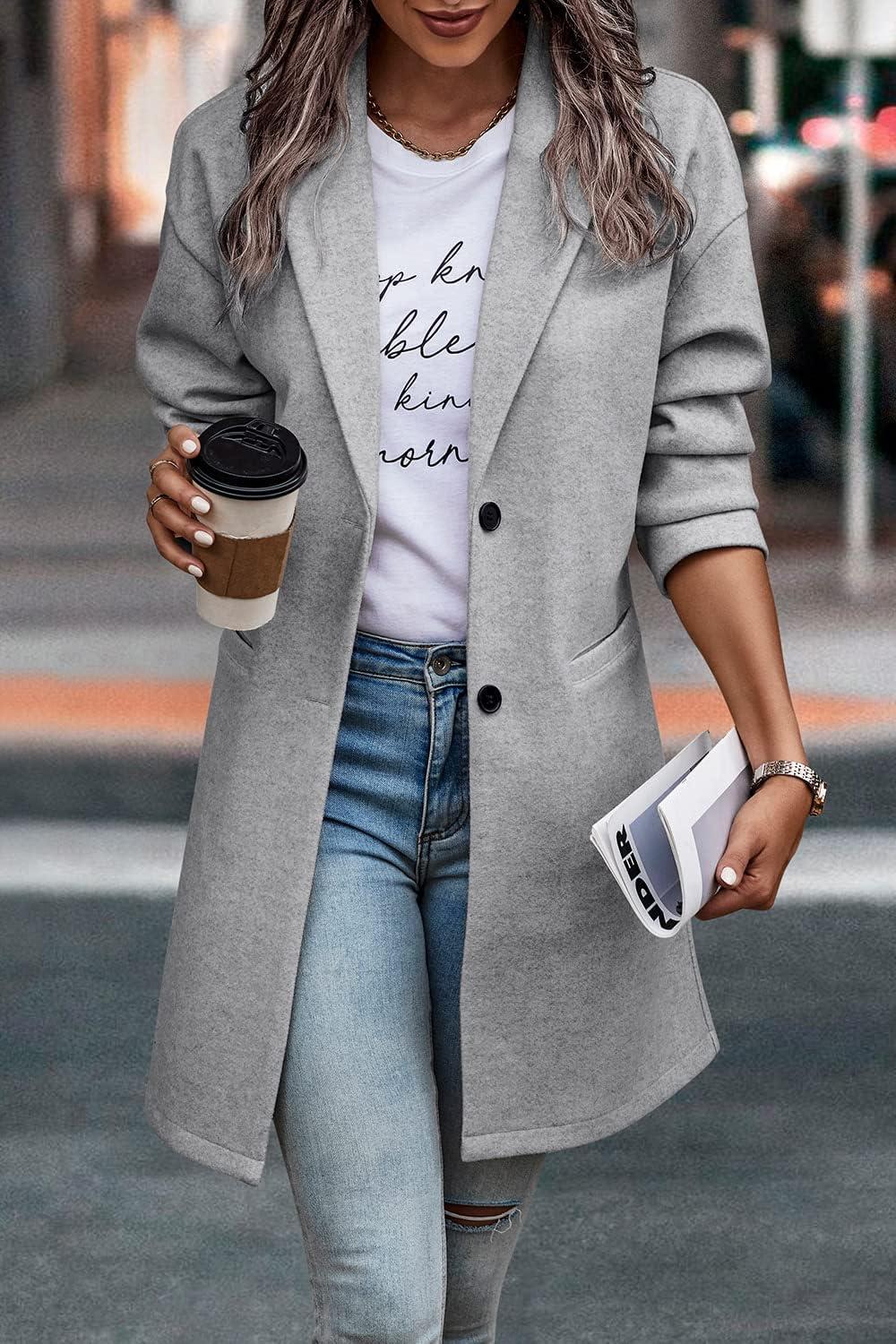 PRETTYGARDEN Women Plaid Shacket Jacket Trendy Fall Casual Button Wool Blend Tartan Trench Coat Winter Clothing with Pockets(Solid Light Grey)