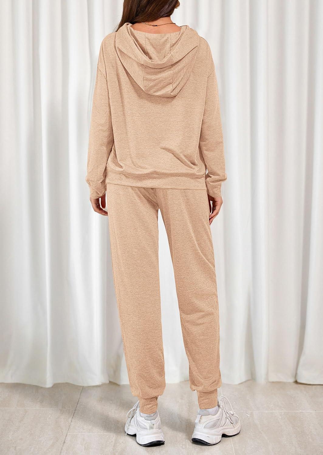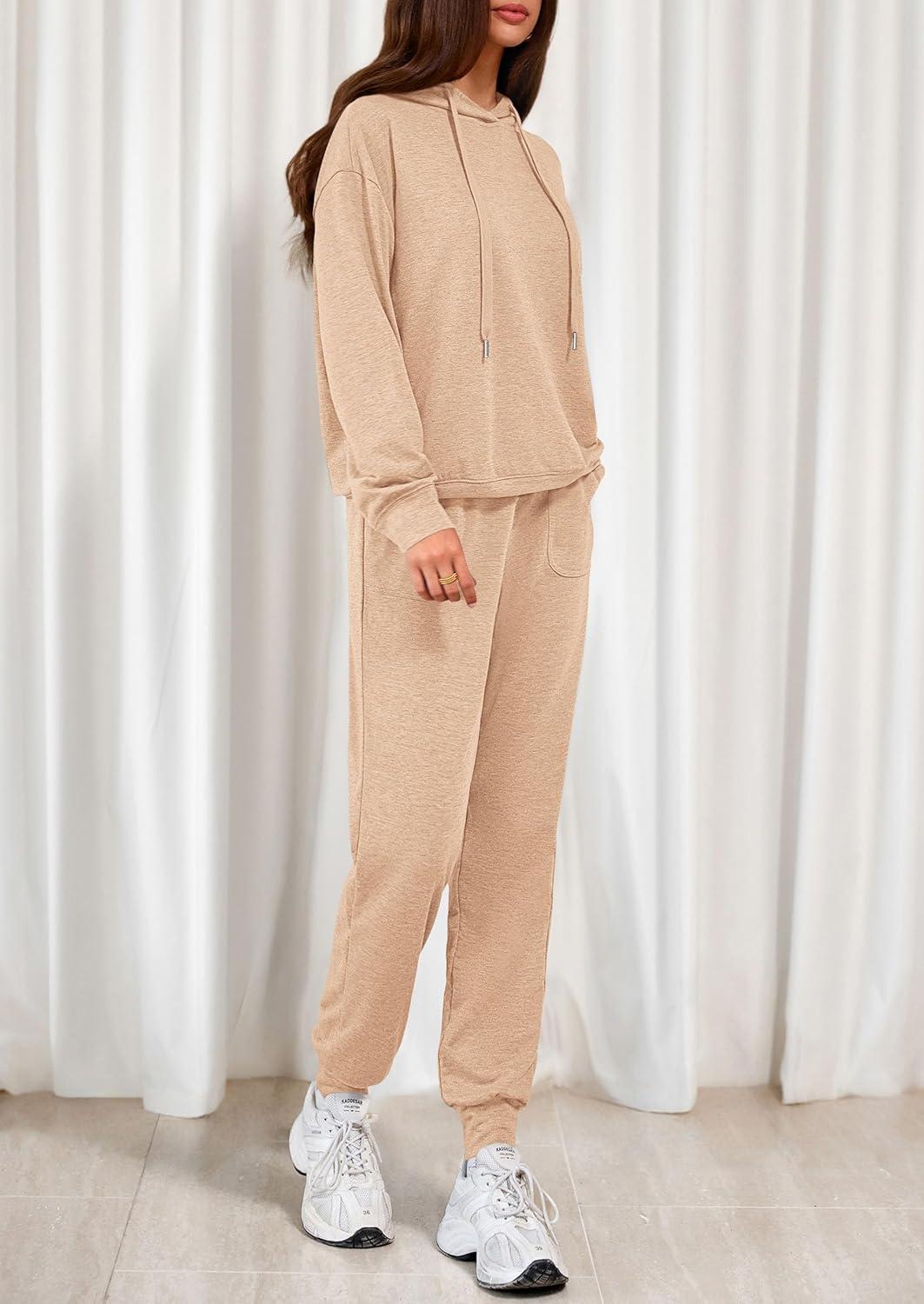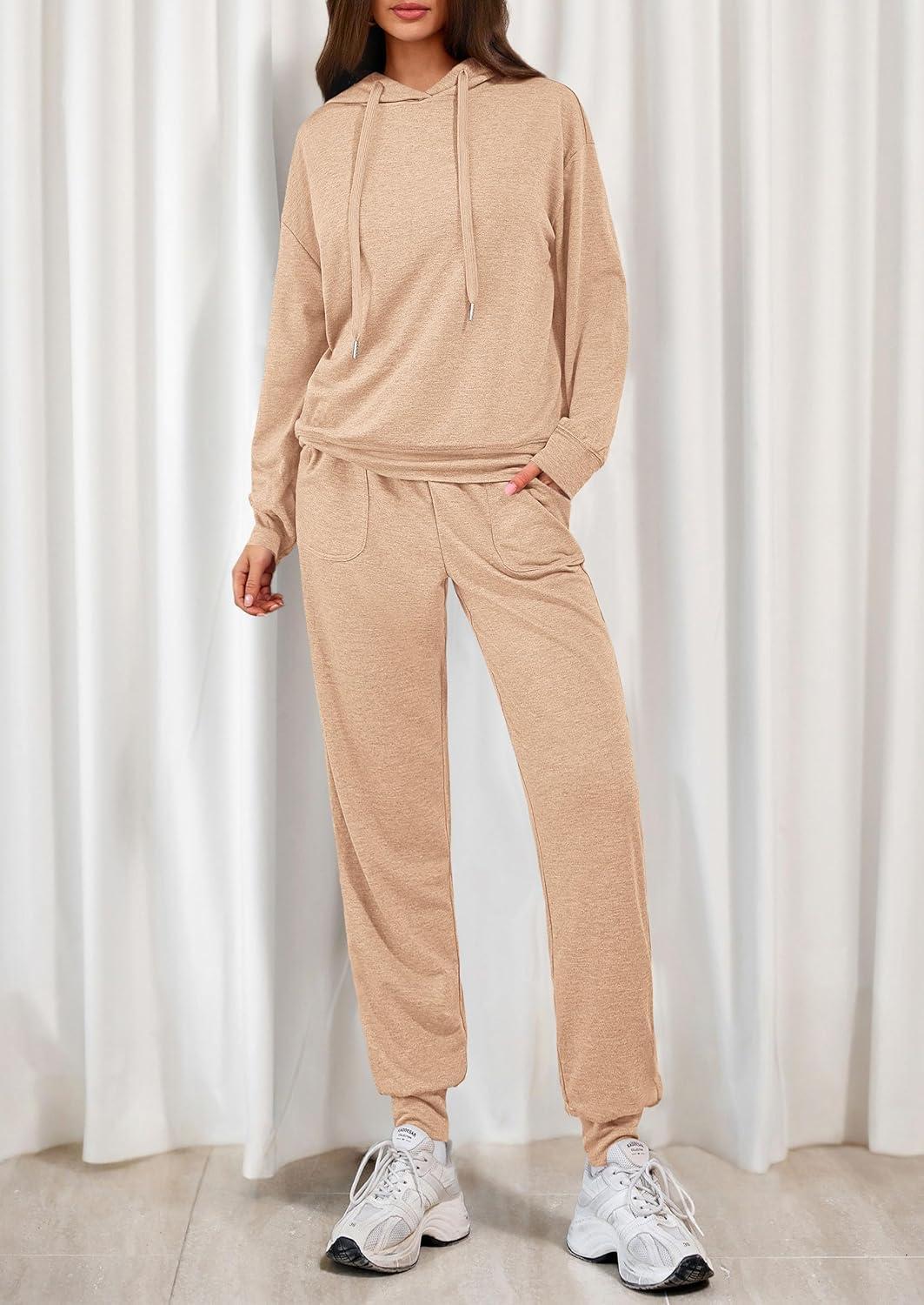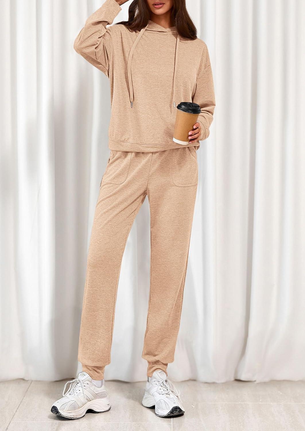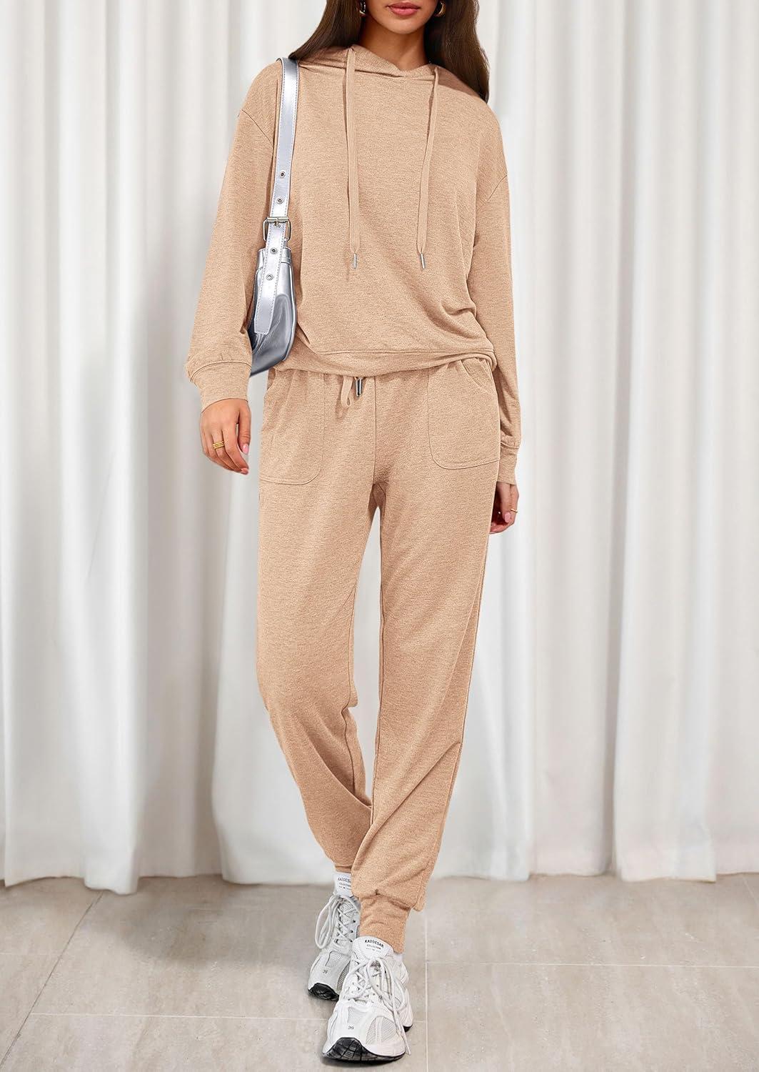 PRETTYGARDEN Women's 2 Piece Lounge Sets Fall Clothes Hoodies Sweatshirt Joggers Sweatpants Sweatsuits 2025 Airport Outfits(Beige)