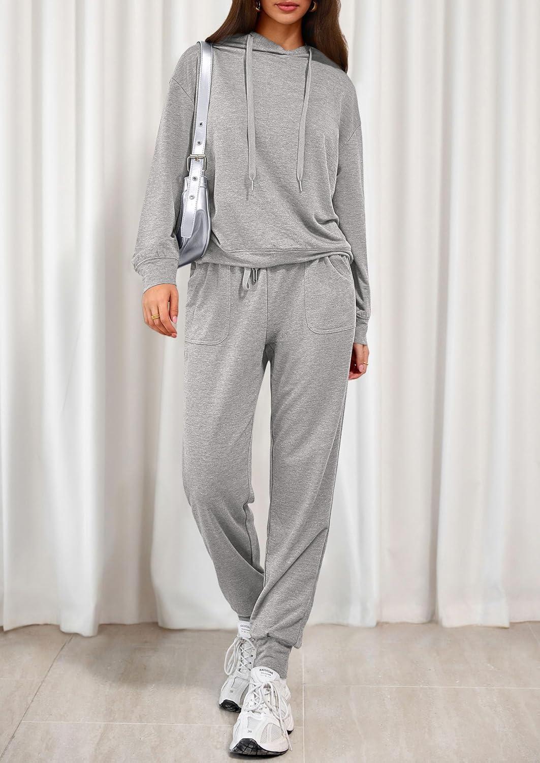 PRETTYGARDEN Women's 2 Piece Lounge Sets Fall Clothes Hoodies Sweatshirt Joggers Sweatpants Sweatsuits 2025 Airport Outfits(Grey)