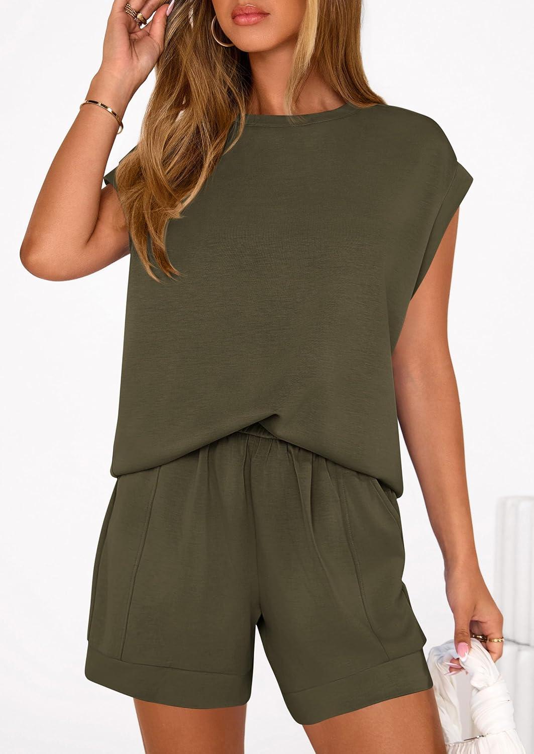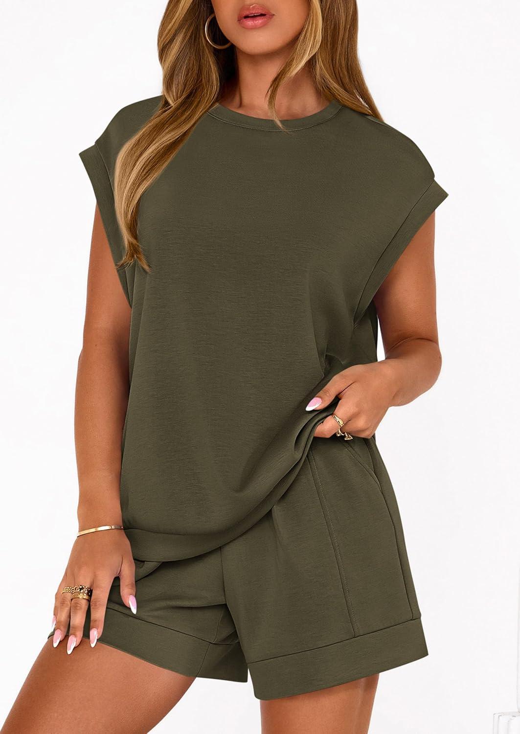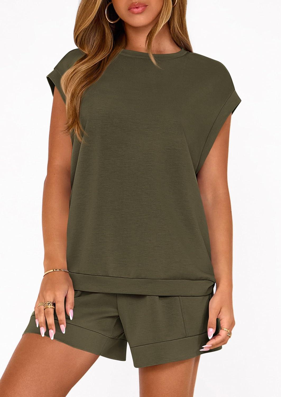 PRETTYGARDEN Women's 2 Piece Lounge Shorts Sets 2026 Summer Travel Outfits Casual Beach Vacation Clothes Spring Sweatsuits(Army Green)