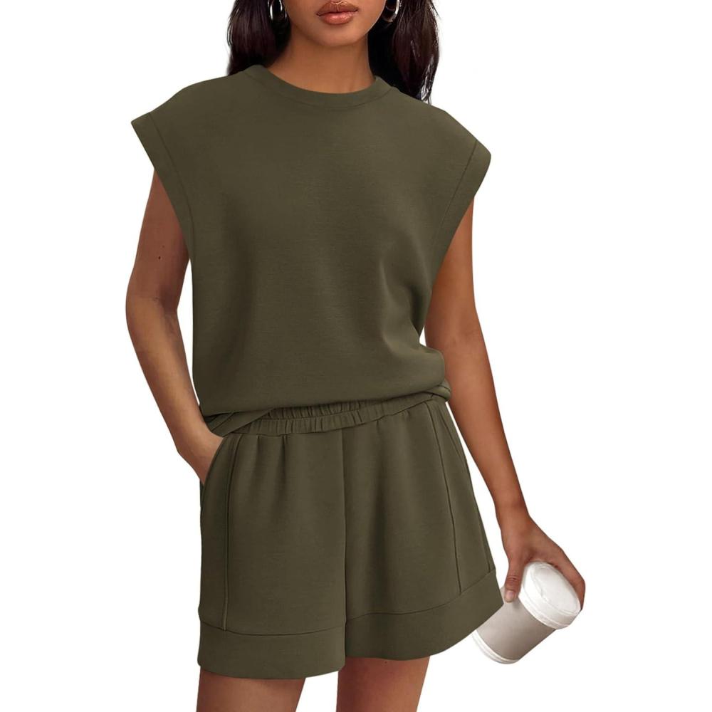 PRETTYGARDEN Women’s 2 Piece Lounge Shorts Sets 2026 Summer Travel Outfits Casual Beach Vacation Clothes Spring Sweatsuits(Army Green)