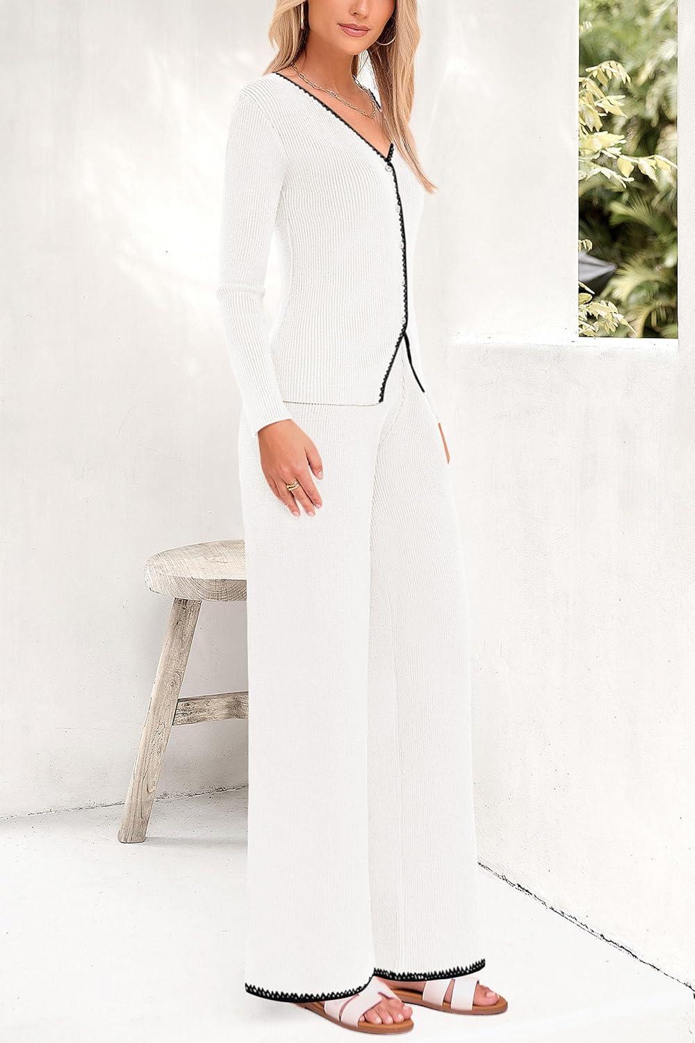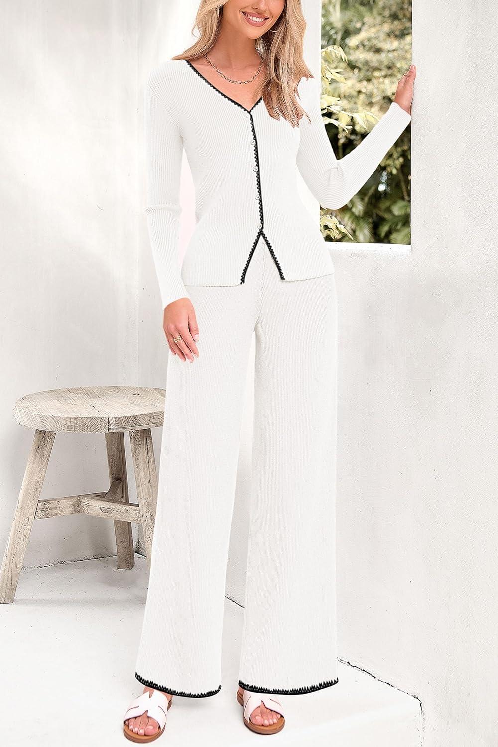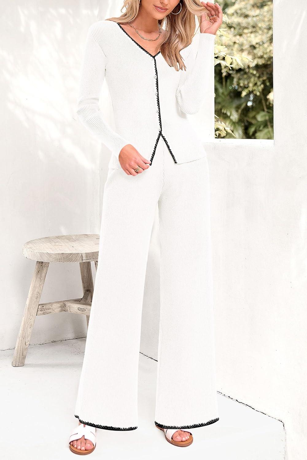 Our clearance section features the best deals on PRETTYGARDEN Women’s 2 Piece Outfits 2024 Winter Knit Lounge Sets Long Sleeve Buttons Sweater Tops Wide Leg Pants Tracksuits(White) and accessories. Check it out now!