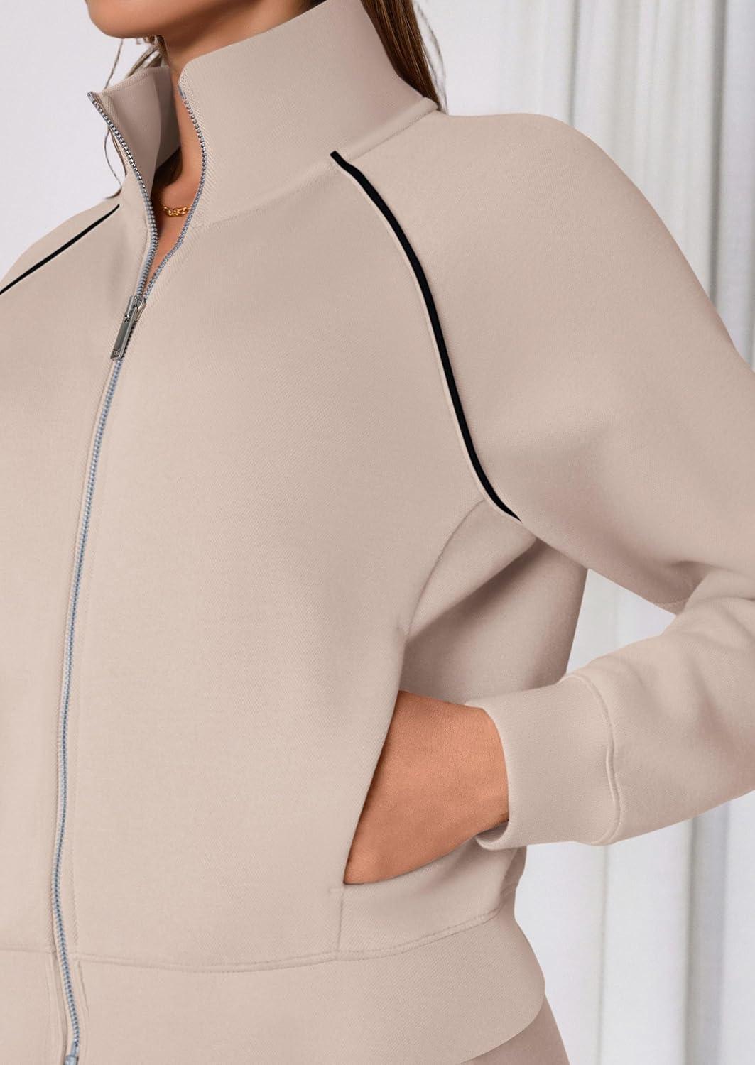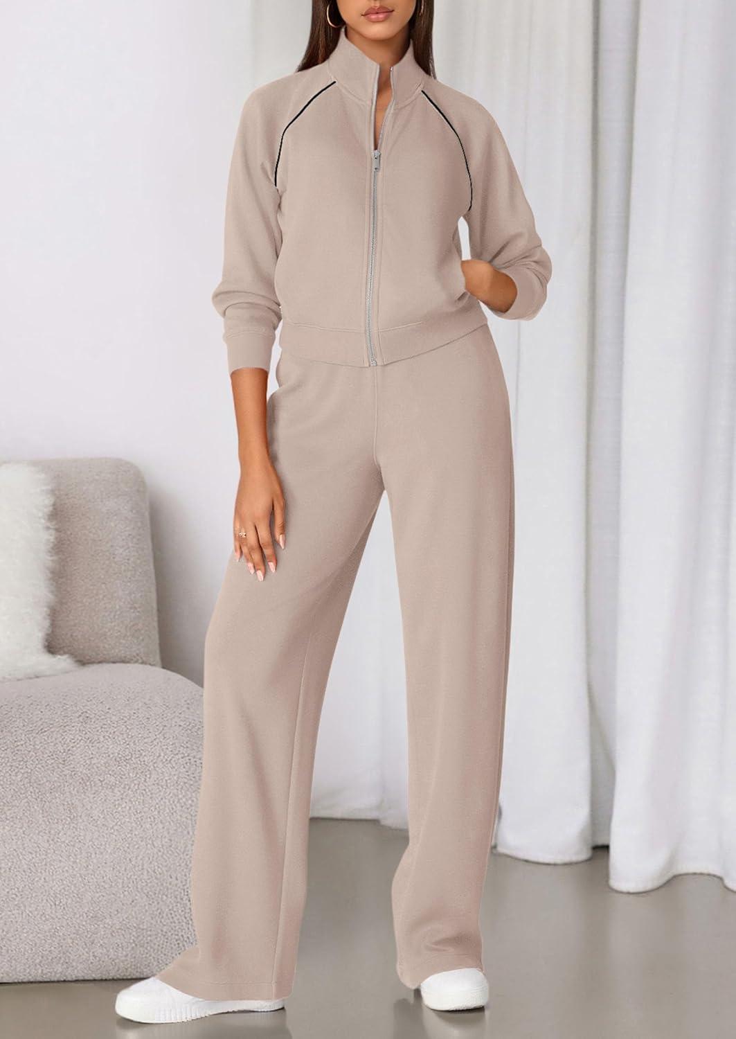 PRETTYGARDEN Womens 2 Piece Outfits Sweatsuits 2025 Fall Full Zip Sweatshirts Workout Pants Matching Lounge Sets Tracksuits(Apricot)