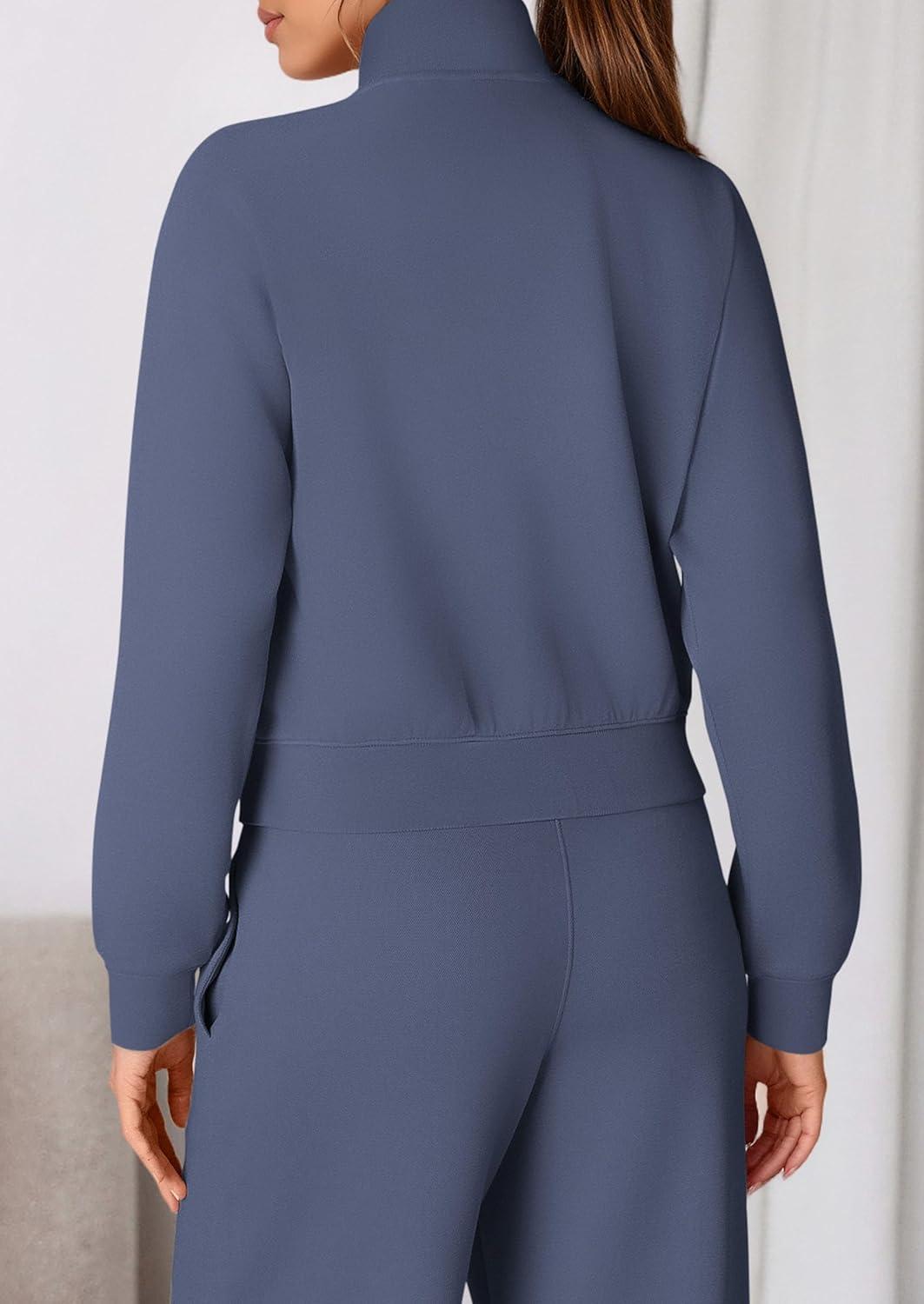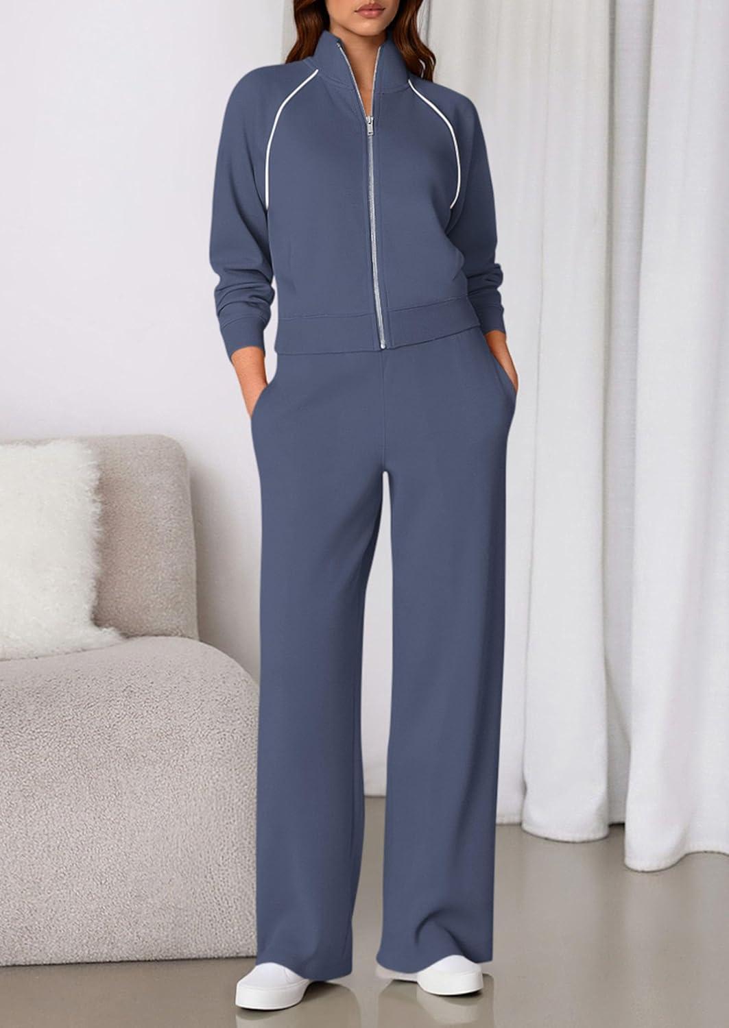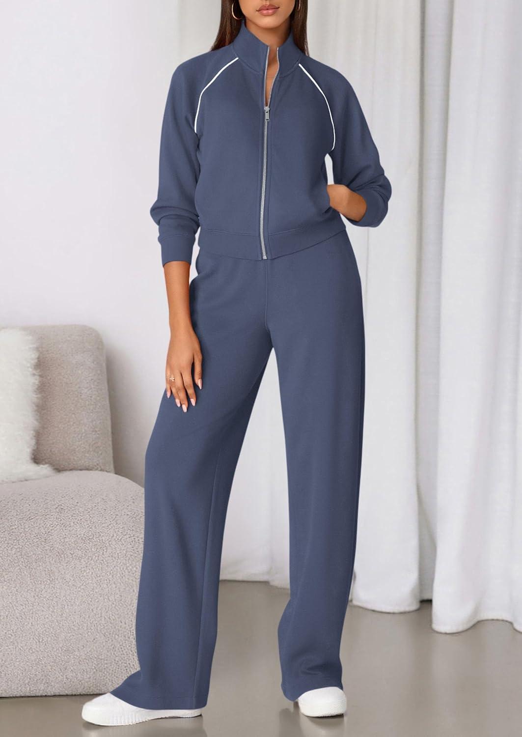 PRETTYGARDEN Womens 2 Piece Outfits Sweatsuits 2025 Fall Full Zip Sweatshirts Workout Pants Matching Lounge Sets Tracksuits(Dusty Blue)